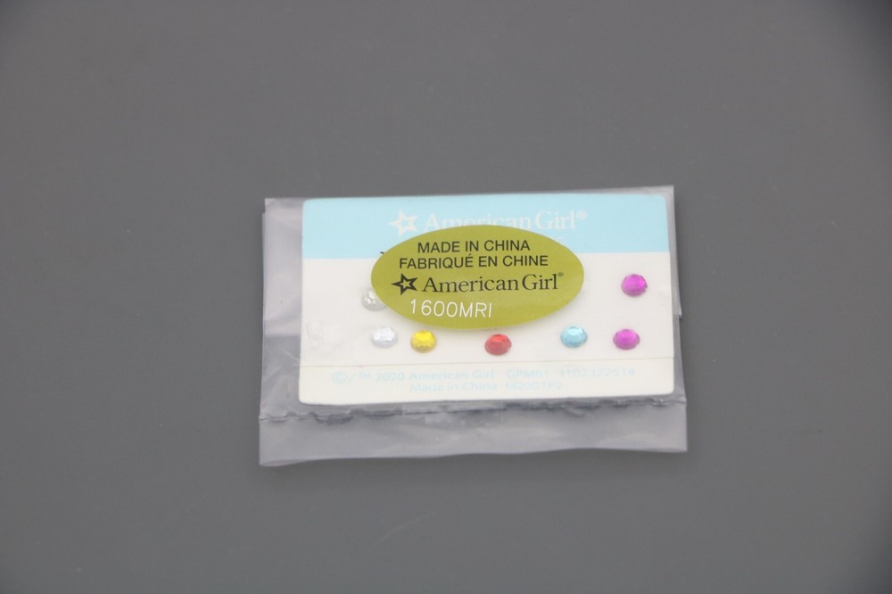 Shipping discount: Free shipping for orders over US $30.00,visit our store to add others items. Item Descriptions: Five sets of stick-on earrings (new in sealed plastic bag) Size: scaled for 18'' doll After sales: Any questions(such as broken、lost……) before you leave feedback please feel feel to contact us,we will do our best to solve it.
