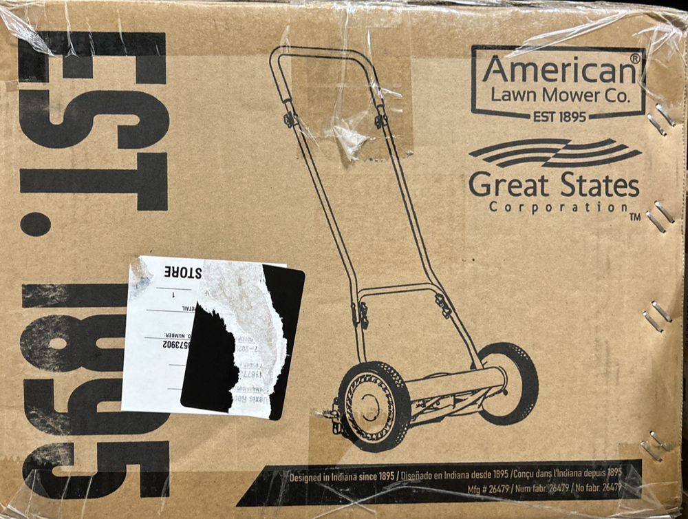 American Lawn Mower Company 1815-18 18-Inch 5-Blade Push Reel Lawn Mower, 18-Inch, 5-Blade, Black Condition: barely used. Will be shipped in original box. Power source type: self-propelled Hand pushed reel lawn mower is solid, sharp, and easy to use Durable and long-lasting mower blades are made of heat-treated alloy steel Scissor-cut action produces a healthy cut for your grass
