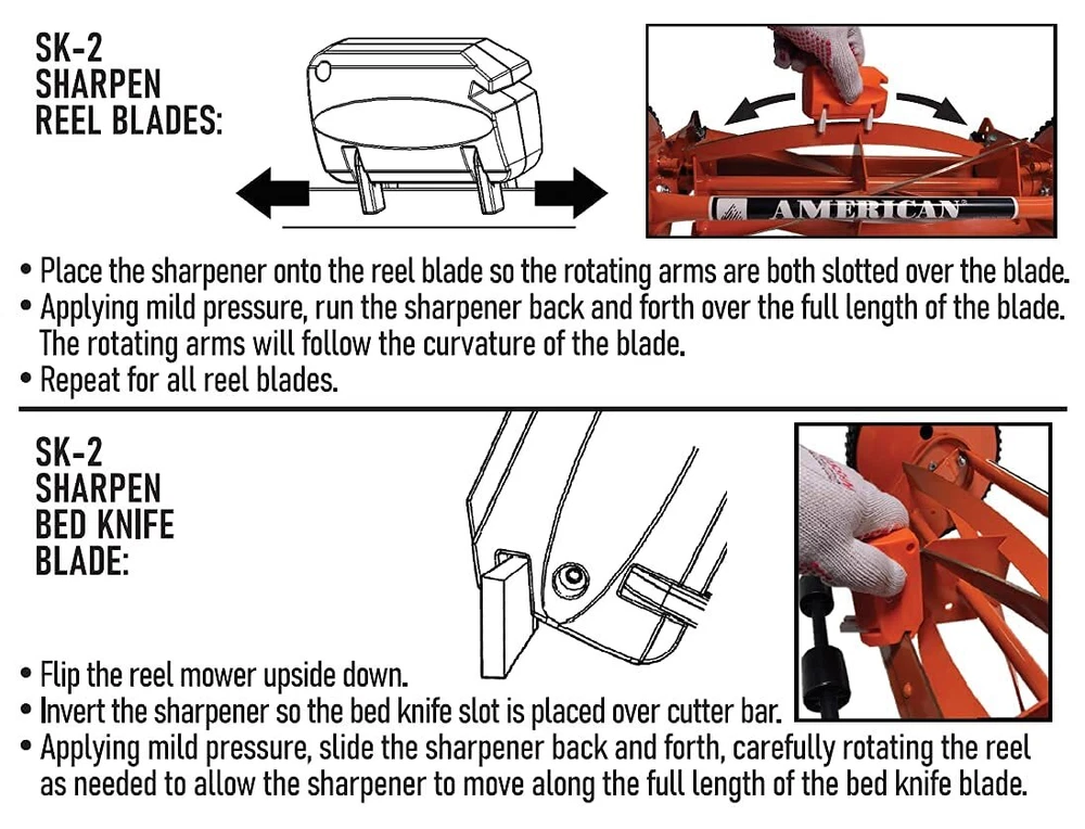 American Lawn Mower SK-2 Reel Mower Sharpener keeps your push mower blades in the best shape. This saves you time and effort when mowing your lawn because the sharp blades can easily trim grasses and weeds in one go. Maintaining your lawnmower blades doesn't have to be difficult. You can do it at home easily and safely with this lawn mower sharpening kit. It contains a detailed manual, so you can never go wrong when sharpening your lawnmower blades. Compatible with all American Lawn Mower, Great States, Earthwise, and Scotts reel mowers Hand reel lawn mower sharpener keeps your blades in optimal cutting condition Safe and easy to use at home Specially designed for reel lawn mowers Carefully packaged in fitted box with detail manual for use