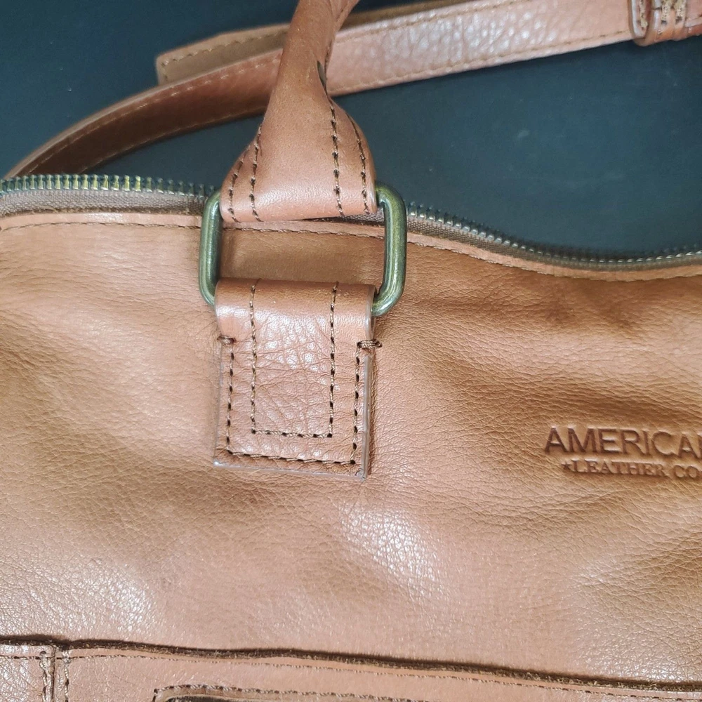 Authentic American Leather Co. vintage tan leather handbag crafted with quality leather and brass tone hardware. This versatile purse features a roomy interior, secure zipper top closure, exterior zip pocket and comfortable handles + a detachable/adjustable crossbody strap β perfect for everyday, travel, or work. NOTE: One small spot on liner bottom. See Photo π Approx. Size: 12" H x 11.5" W x 3.25" D π¨ Color: Warm Tan / Cognac Leather π Brand: American Leather Co. π Made Year: Estimated 1990sβearly 2000s (approximate based on style & brand era) π Condition: Gently used β normal vintage wear; leather is soft and broken-in with character. β¨ This classic leather tote purse transitions effortlessly from casual to dressy, and pairs beautifully with fall/winter outfits. Functional interior space holds wallet, keys, phone, and daily essentials. Perfect for gift giving or as a staple everyday purse for those who love vintage leather that only looks better with age!