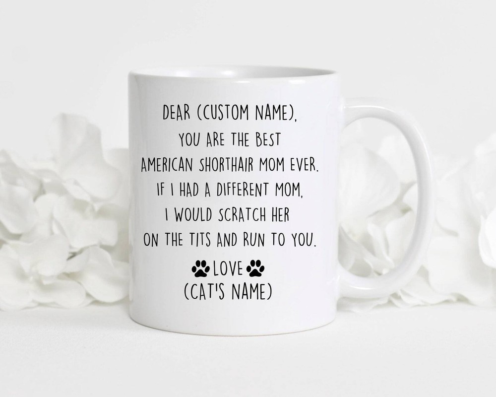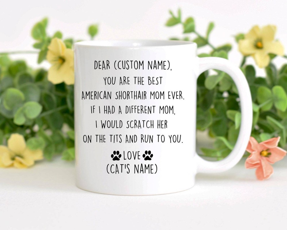 American Shorthair Mom Birthday Gift American Shorthair Mom Christmas Gift Us Shorthair Mom Valentine Gift Us Shorthair Mom Appreciation Product Details.. This high quality 11oz. ceramic white mug has a premium hard coat that provides crisp and vibrant color reproduction sure to last for years. Perfect for all hot & cold beverages. The highest quality printing possible is used. It will never fade no matter how many times you wash it. Material: 100% Ceramic. Print both sides. Dishwasher and Microwave Safe. High Gloss + Premium White Finish. Printed in the U.S.A. Personalized & Custom. We support personalized and custom mug to add custom, when placing an order, you can add notes to the "order note" in shipping address section. Also you can contact us directly via message. Shipping Info. Ready to ship in 1 to 2 business days, All products are made-to-order and proudly printed in the United States. Shipped by USPS and DHL, You will receive your order in 5-7 days. Replace & Refund. All products are defective during shipping broken, chipped will be replaced free of charge. You are not satisfied with the product, we will refund 100% money to you. If any other issues arise, please do not hesitate to message, we would be more than happy to assist you.