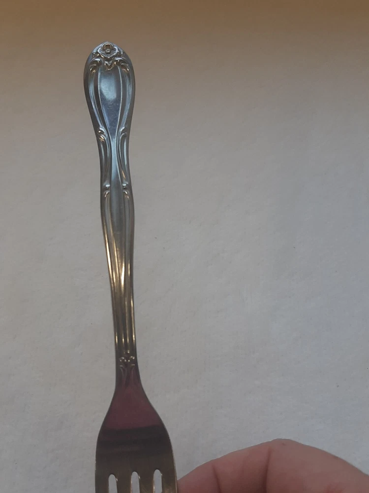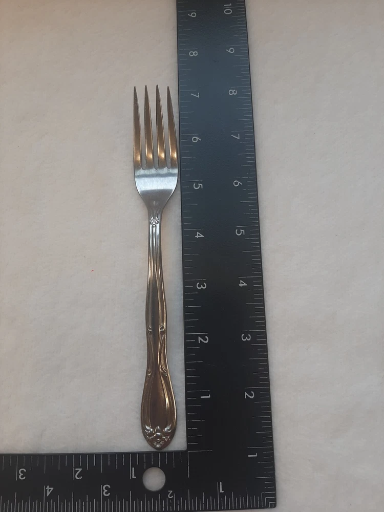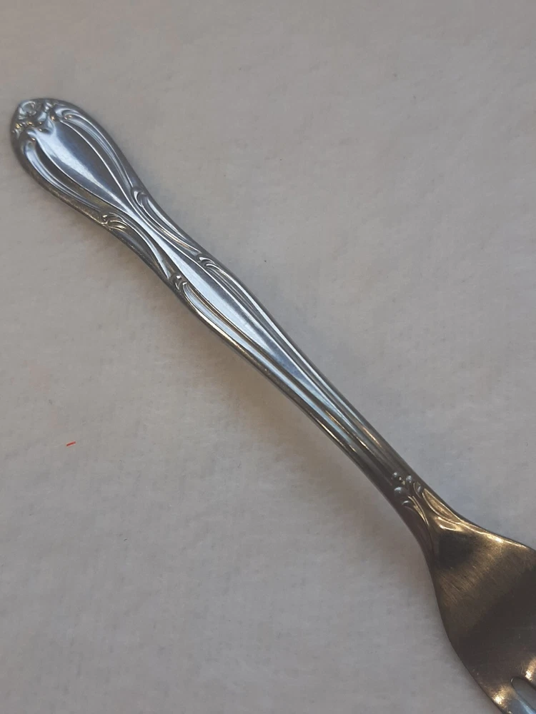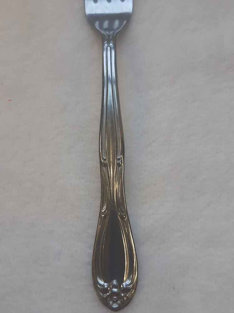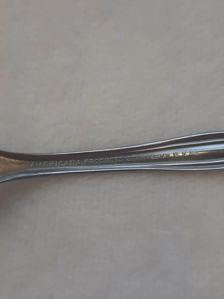 Americana Products Stainless USA 7" Floral Pattern Handle Replacement Fork In good pre-owned condition may show signs of wear from use/handling/storage/display. Please view all pics for condition/details/flaws/issues. SOLD AS IS There is/maybe marks/spots/dirt/debris please see photos 1-12, there is/maybe paint loss/sticker loss please see photos 1-12, there is lite discoloration please see photos 1-12, there are surface scratches to item please see photos 1-12, please see all photos for condition/issues/details.
