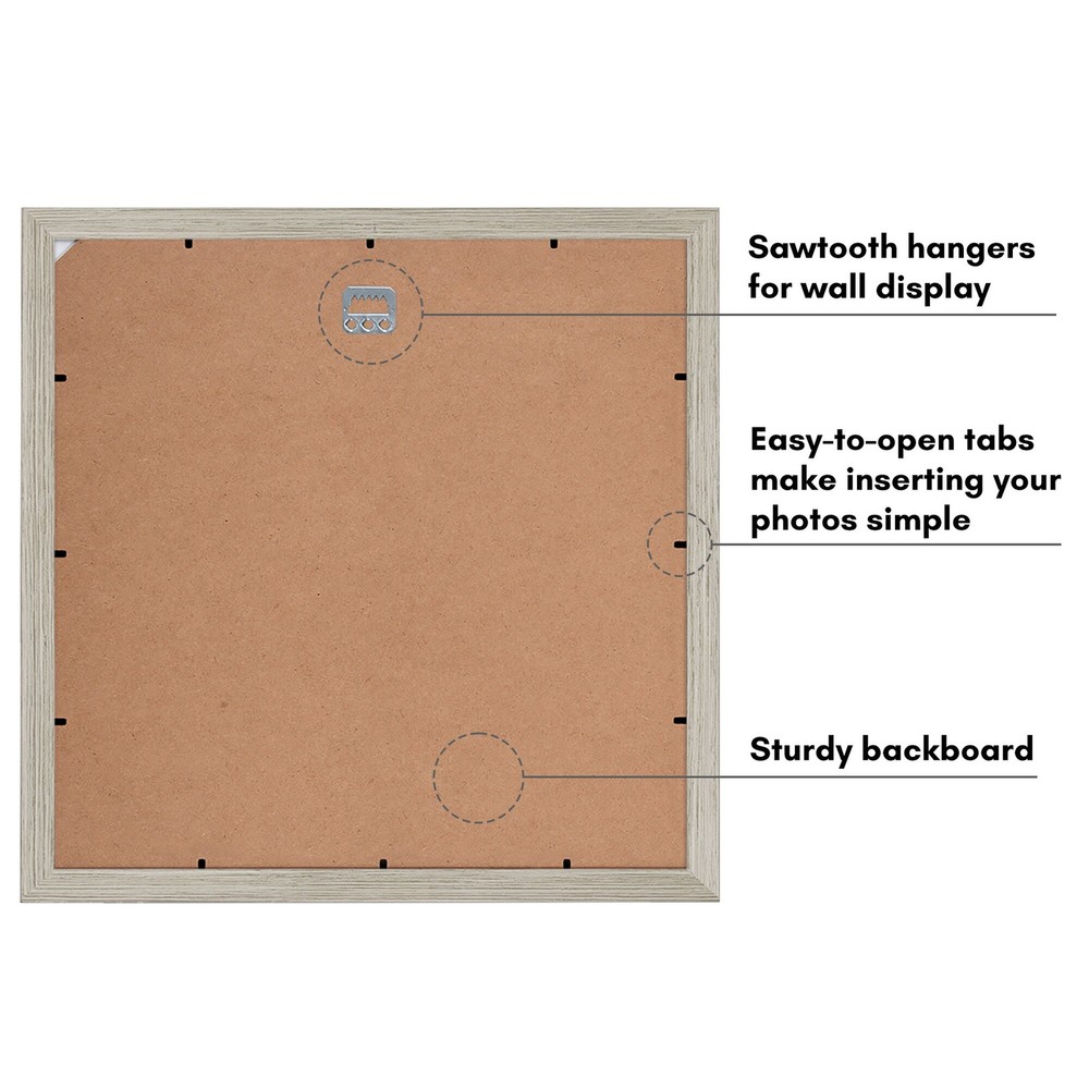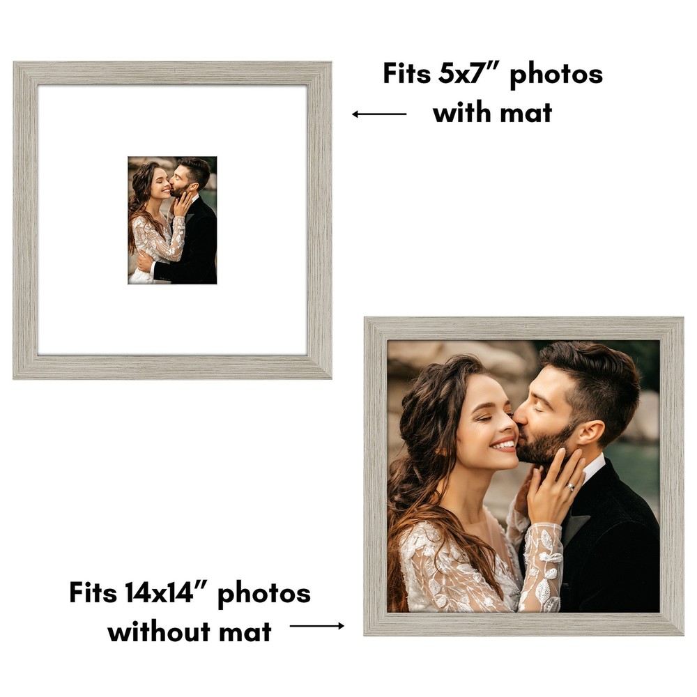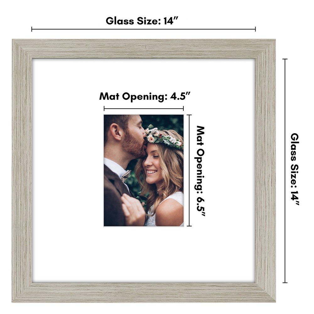 Make your wedding memories the showpiece of your living space with Americanflat's 14x14 picture frame for wedding photos, anniversaries, and other celebrations. With the mat, you can utilize the 5x7 frame to feature personalized signatures from your loved ones on the big day, adding to the everlasting memories of your wedding. You can use all the 14x14 frame without the mat. Crafted from engineered wood, the frame provides a strong, resistant backboard with a shatter-resistant glass front. This frame can be hung due to the built-in sawtooth hanging hardware for easy wall mounting.* Unique Design: An elegant 14x14 wedding picture frame without mat or a 5x7 frame with mat draws attention to your wedding photo, showcasing your big day. The actual mat display area is 4.5x6.5 inches. * Free Shipping Over $49.99* Details Americanflat 14x14 Wedding Signature Picture Frame - 5x7 Picture Frame with or Product Description: Make your wedding memories the showpiece of your living space with Americanflat's 14x14 picture frame for wedding photos, anniversaries, and other celebrations. With the mat, you can utilize the 5x7 frame to feature personalized signatures from your loved ones on the big day, adding to the everlasting memories of your wedding. You can use all the 14x14 frame without the mat. Crafted from engineered wood, the frame provides a strong, resistant backboard with a shatter-resistant glass front. This frame can be hung due to the built-in sawtooth hanging hardware for easy wall mounting. * Unique DesignAn elegant 14x14 wedding picture frame without mat or a 5x7 frame with mat draws attention to your wedding photo, showcasing your big day. The actual mat display area is 4.5x6.5 inches. * Signable Picture FrameThis 14x14 personalized wedding picture frame can also be used as a 5x7 wedding picture frame with a wide white beveled mat. It is perfect for customization with signatures and is ideal for weddings, anniversaries, and other celebrations. * Reliable CraftsmanshipDesigned from engineered wood, our durable picture frame for wedding photos features a shatter-resistant glass front for a clear view of your special photos and a sturdy backboard that securely holds pictures in place. * Display Photos with EaseThis wedding photo frame for your big day comes with easy-to-open tabs, making inserting or replacing your photos quick and effortless. It includes built-in sawtooth hanging hardware for easy wall mounting. * AmericanflatOur specialty is providing contemporary and affordable solutions to meet all your home decor needs. From elegant frames to displays for collectibles, we help to transform any room setting into inviting and creative spaces.