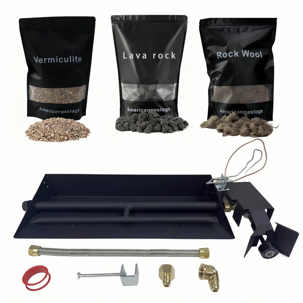 Americangaslos 18"-24" Burner Pan with Valve Remote for Gas Fireplace Gas