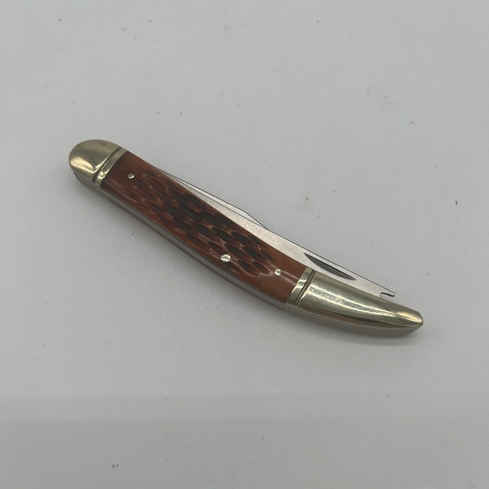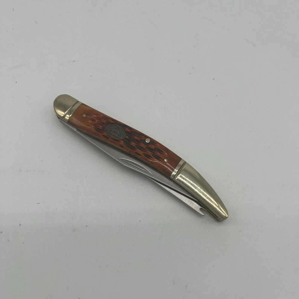 This Americas Legacy folding bone knife with bone and brass handle pocketknife is a must-have for any collector or outdoor enthusiast. Its manual opening mechanism allows for easy access to the 2.76 - 4in. plain edge blade, which is perfect for everyday use or outdoor adventures. The knife also features a bottle opener tool, making it a versatile addition to your collection. The brown color of the knife and the modern folding design make it a stylish and functional accessory. Whether you're using it for camping, hunting, or everyday tasks, this knife is sure to impress. Add it to your collection today and experience the quality and durability of Americas Legacy.