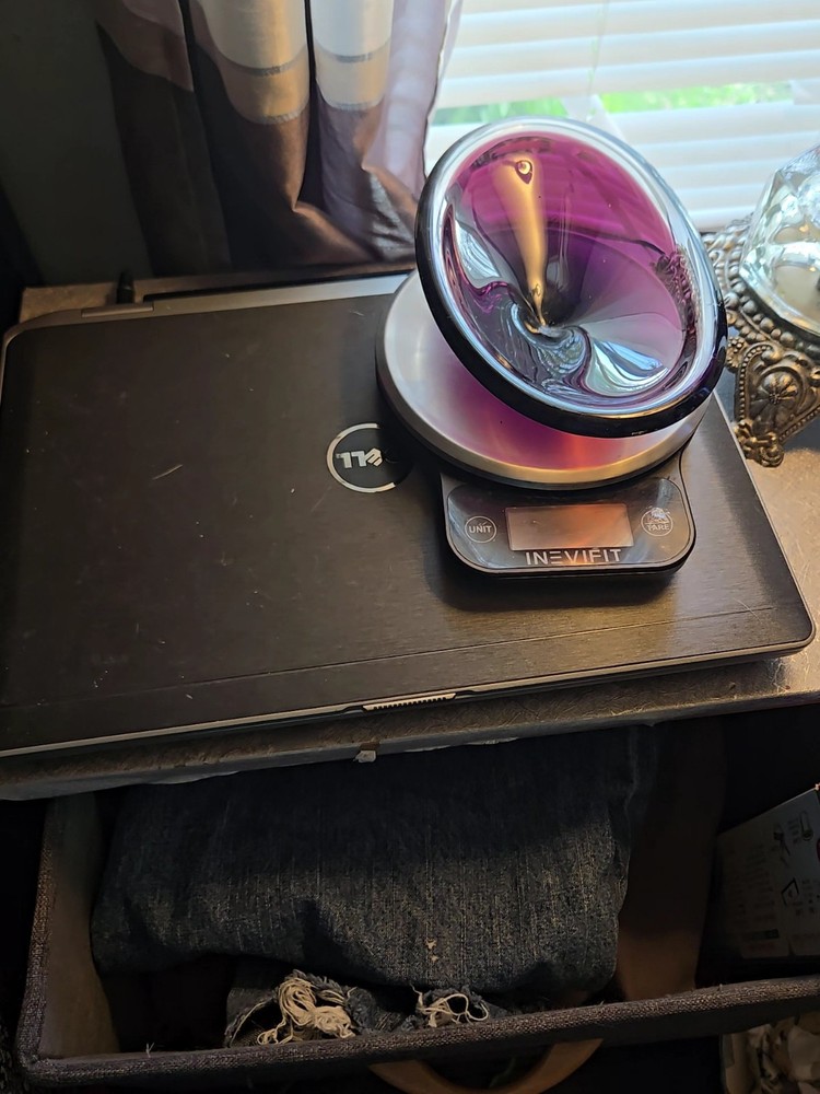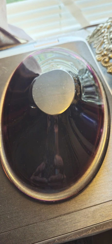 This beautiful amethyst-colored glass dish is perfect for your candy or trinkets. Measuring 7.5 inches in length and 5 inches in width with a depth of 1.5 inches, this oval-shaped dish has one compartment to keep your items organized. It is made of high-quality glass and has a smooth, shiny finish. The dish is unmarked but is of great quality. Use it as a decorative piece or to store your small items, this dish is versatile and will complement any decor. It is Amethyst in the light and in the darkness it looks brown.