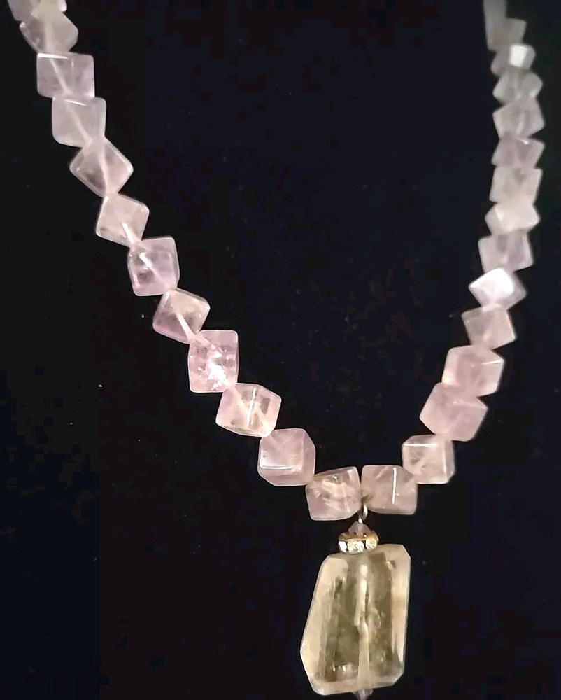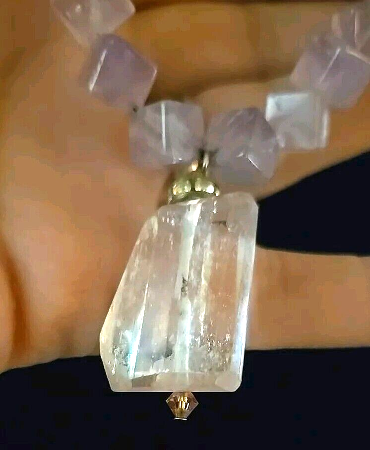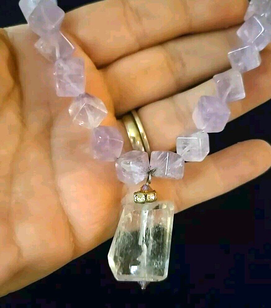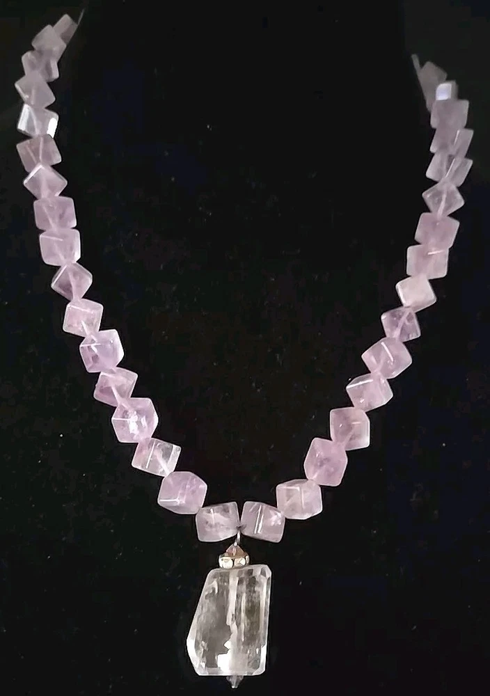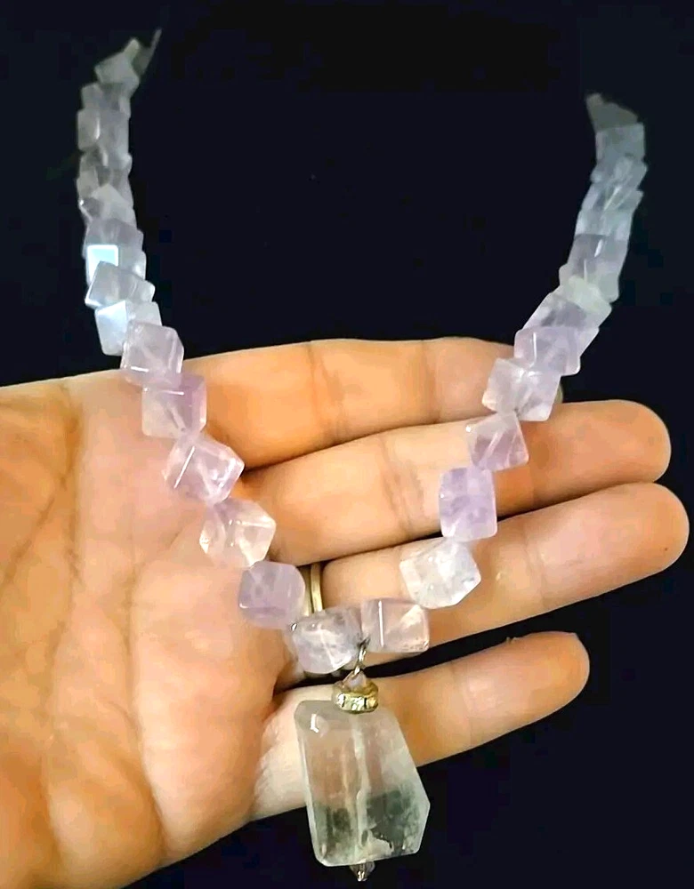 Amethyst Purple Cubed Quartz Crystal Beaded Artisan Necklace 20 Inches