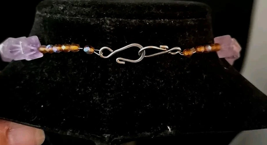 Metal: Unknown Department: Women Type: Necklace Metal Purity: unknown Necklace Length: 20 in Country of Origin: United States Setting Style: Cluster Color: Purple Main Stone Color: Purple Theme: Nature, Beauty, Art Pendant Shape: Asymmetrical Closure: Hook Main Stone: Amethyst Main Stone Shape: Cube Materials sourced from: United States Style: Beaded, Pendant Brand: Artisan Main Stone Creation: Natural Material: Crystal, Gemstone Secondary Stone: Quartz, Crystal Chain Type: Wire Number of Gemstones: 20+