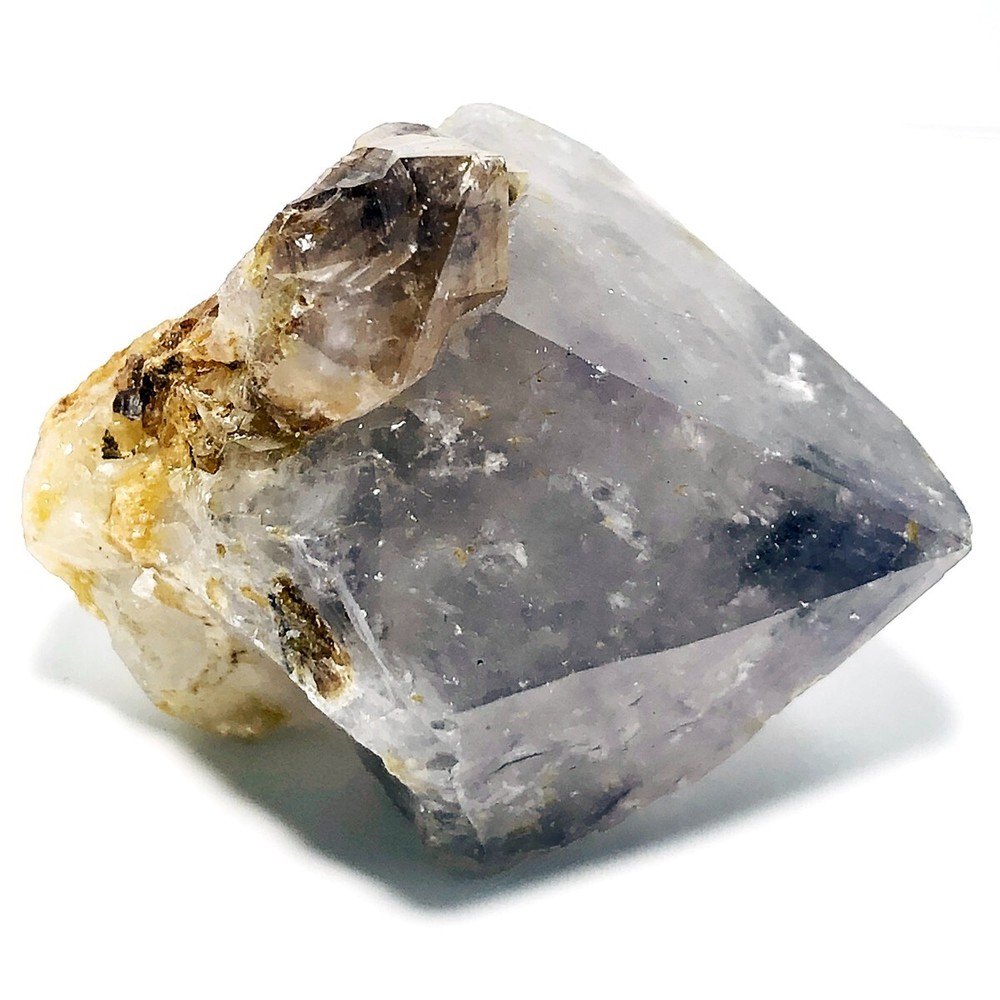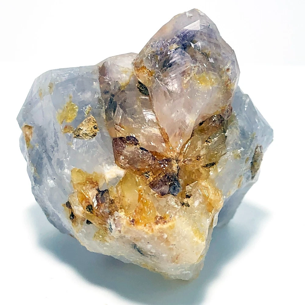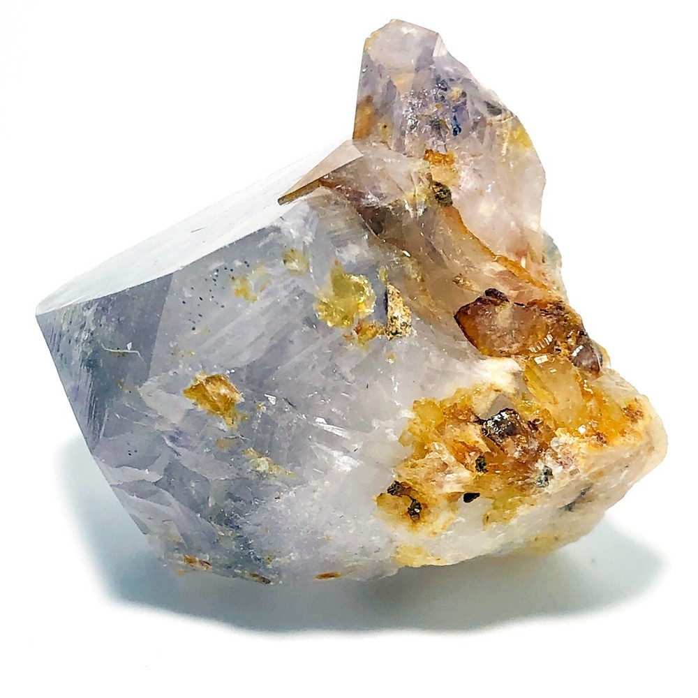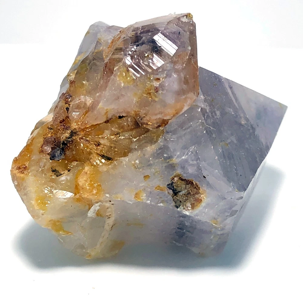 Cactus Quartz or Spirit Quartz Size Approximately 3.5 cm x 4 cm x 4.5 cm 62 g View My Other Items For Sale Visit My eBay Store Add me to your Favorite Sellers A cactus or spirit quartz is a quartz crystal that is encrusted by a second generation of smaller crystals grown on its prism faces. These crystals were first discovered in 1986 in the Magaliesberg Mountain Range near Pretoria, South Africa. It occurs as quartz, citrine and amethyst, and comes in a wide range of colors, including purple amethyst, violet amethyst, smoky, milky clear and golden citrine. FAQ/Tips Crystals are priced by quality, color and size. Purple amethyst is more highly prized and will cost more for a smaller lesser quality crystal. Lavender is the most common color and where you will find the best quality/value for price Crystals change colors with changes in type angle and intensity of light. Color may also vary between monitors. Pictures were taken in bright natural light. We do our best to give you many views so you can judge the quality of the given crystals. If you have questions please ask before bidding or buying. Many of the crystals have special color properties: Many have phantoms, not just the ones we?ve indicated. Some have ?floating? purple tips. The placement of darker purple against purple or white crystals appears to change as the crystal is turned. Many are a mixture of citrine and amethyst. The ones called ?Golden Healers? or ?Sunshine? have a rainbow effect on crystal faces. We value your feedback please contact us with problems. Items are returnable. Track Page Views With Auctiva's FREE Counter