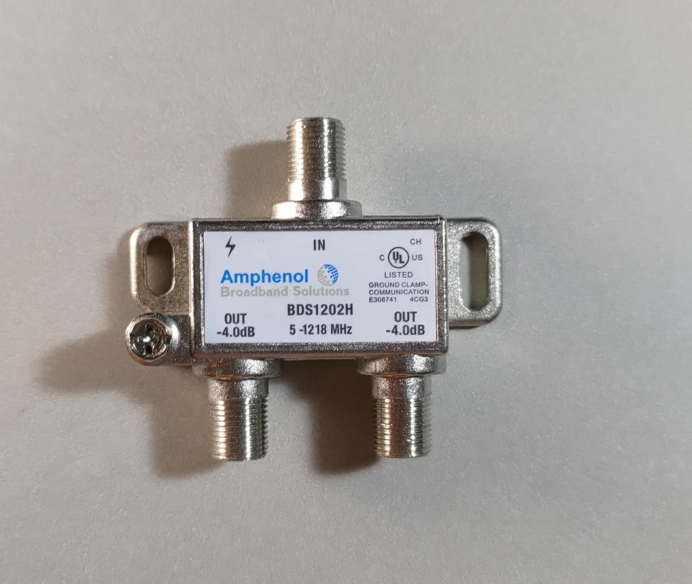 Amphenol Broadband BDS1202H 2-Way Digital High Performance COAX Cable Splitter. 5-1218 MHz out -4.0db Photos of actual item. Default shipping is USPS First Class but you can also select Priority Mail (recommended, but higher cost). Check out all of my items.