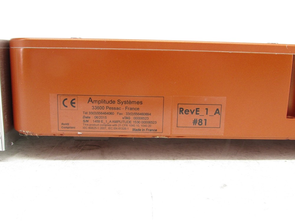 Amplitude Systemes Laser Head Module . Why buy from OceanTech Our company has been serving customers since 2005, and we are proud to have built a reputation for providing top-notch products at unbeatable prices. Our refurbished computers and laptops go through a rigorous testing process to ensure they are in top working condition. We wipe all data to NIST and other industry standards, ensuring that our customers can trust the security of their devices. We hold multiple certifications, including R2v3, and we are committed to protecting the environment by properly disposing of scrap materials. Our inventory is always changing, so be sure to check back often to see what we have available. CUSTOMER SERVICE FREE RETURNS 30 or 90 DAYS WARRANTY (Please see listing for more details) ITEM CONDITION Cosmetic Condition Field (Assigned in Reuse) Functional Condition Field (Assigned in Reuse) C1 = Damaged (For materials recovery) F1 = Collectible or Specialty Equipment (Core Requirement 6.(e)(3)(A)). Collectibles are rare, vintage, and no longer manufactured or supported by the OEM. Specialty equipment are rare and specialized equipment not generally available in retail. May have broken or missing parts. C2 = Used Poor (Heavy use and age) Cosmetic blemishes are significant, such as multiple heavy dents, may require repair. Damages to latches, hinges, keyboards, etc. are prevalent. Critical parts are missing. F2 = Verified Specialty Electronics (Appendix D). Verified removed from operation with no known defects in functionality. No physical damage or defects. No corrosion. No missing parts. Part numbers and serial numbers verified accurate. C3 = Used Fair (Moderate use and age) Cosmetic blemishes are consistent with wear, including multiple dents, discoloration, and light to heavy scratches. Damage to latches, hinges, keyboards, etc. Some parts, panels, bezels, or covers may be missing. F3 = Key Functions Working (Appendix C – Test and Repair). A subset of the primary functions of the device that an ordinary user of the device expects to function are verified working through manual or software tests. Software may not be loaded or configured. Hardware required for key functions to be tested may have been removed after testing (e.g. Hard Drive). May be missing components or parts not essential to key functions. Secondary functions may not be tested or working. May not include Focus Materials (e.g. Battery) that are not working or not tested. All missing components or parts will be listed for each item. C4 = Used Good Cosmetic blemishes include scratches and/or other surface imperfections from consistent use, but equipment is in good condition overall. Minor wear of labeling may be visible. Small dents and small areas of discoloration may be present from the removal of tags No damage to latches or hinges, not any missing parts, panels, bezels or covers. F4 = Hardware Functional (Appendix C – Test and Repair). All hardware is tested and verified working through manual or software tests. No missing or damaged components or parts. Software not loaded or configured. No hardware defects. C5 = Used Very Good Cosmetic blemishes include minor scratches and/or other surface imperfections from consistent use, but equipment is in good condition.Minor wear of labeling may be visible. Minor dents and areas. F5 = Refurbished (Appendix C – Test and Repair).All functions tested and verified working through software tests. Loaded and configured with legally licensed software for full operations. Software test results are available. No hardware or software defects. C6 = Used Excellent. Overall excellent cosmetic condition. May have light scratches or other minor blemishes from normal wear. Minor cosmetic blemishes have no impact on the system’s overall functionality or performance.Fully cleaned with all non-original labels removed. No missing parts. F6 = Like New (Appendix C – Test and Repair). All functions tested and verified working through software tests. Repaired with OEM original parts. Loaded and configured with original manufacturer’s legally licensed software for full operation. Meets OEM specifications for full original functionality. Software test results are available. Zero defects. C7 = Certified Pre-Owned (Seller or Manufacturer Refurbished). Used equipment that has been fully restored to like-new condition with warranty.Fully cleaned and cosmetically repaired with no blemishes, no missing parts. C8 = Unused. New, out of box, unused equipment removed from original packaging with no signs of wear or alteration. C9 = New Open Box. New, unused equipment in original packaging where factory seals have been broken. No signs of wear or alteration. SHIPPING Enjoy free shipping on select orders within the contiguous 48 states, with the exception of Alaska, Hawaii and US territories. For these areas, please contact us for a shipping quote or choose USPS Priority Mail as an alternative. We use a variety of shipping methods such as Fedex, UPS or USPS and reserve the right to choose the most cost-effective option for you. Please note that for orders over $750, a signature is required upon delivery. We are required to ship to the address provided on your paid order. For those needing expedited shipping, send us a message with your request and we will do our best to accommodate your needs. Please note that same-day shipping is not guaranteed if the order is placed after 12pm CST. All orders will ship the following business day after payment is received. Please note that we are closed on weekends and observe Federal Holidays, following the USPS annual shipping calendar. Unfortunately, at this time, we are unable to ship outside of the USA but we hope to offer this service in the future. We apologize for any inconvenience. RETURNS We want our customers to have security and peace of mind when making a purchase. We participate in eBay’s 30 Day Money Back Guarantee program and all Returns are FREE, no questions as