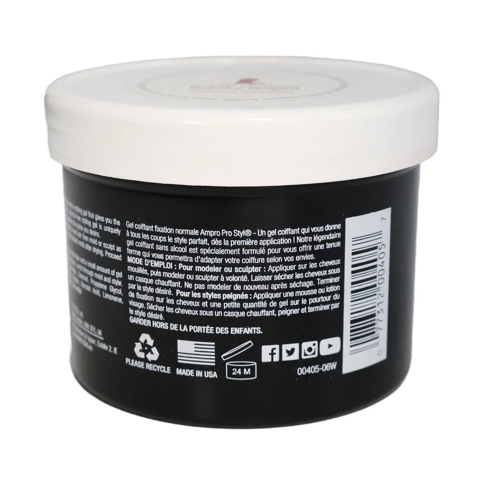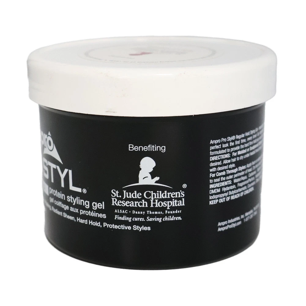 Product Description Ampro Pro Styl Regular Hold Protein Styling Gel, Moisturizing 10oz Ampro Pro Styl Regular Hold Protein Unisex Styling Gel - because you want a styling gel that gives you the perfect look the first time, every time! Our legendary vegan, alcohol-free styling gel is uniquely formulated to provide the hard, firm hold you need to achieve the styles you desire for all hair types. This gel is designed for sculpting and molding hair styles and for protective hair styles with resistant hair textures. SAY GOODBYE TO FLYAWAYS. With this wonder-working gel, you can define your natural hair and tame lose strands with a firm, non-greasy hold, while also giving your hair a fresher, healthier shine. PROTEIN RICH FORMULA. Strengthen your hair with this protein-enriched gel, to boost your hair's resilience and leave it looking and feeling healthy. It protects your hair during styling and is great for natural hair and textured styles. GOODBYE FLAKES AND GREASE. Enjoy soft, manageable waves and curls by using this non-greasy gel. The moisturizing formula is non-flaking and distributes easily throughout your hair, to help create any hairstyle on any hair texture. A LEGACY PRODUCT LINE. Ampro, which stands for American Products, is a leading beauty manufacturer, established since 1947. We produce top-quality personal care products for hair, body, and skin, free of alcohol, parabens, sulfates, and dyes. MULTICULTURAL HAIR CARE PRODUCTS. Ampro is continuously expanding its hair care line by adding exciting new products, like our Shine 'n Jam Magic Fingers, the Ampro Pro Styl Olive Oil Styling Gel, and our newest kid's line, Ampro's Beautiful Child. Ingredients Water/Aqua, Carbomer, Sodium Hydroxide, Caramel, Propylene Glycol, DMDM Hydantoin, Fragrance/Parfum, Hydrolyzed Soy Protein, Benzoic Acid, Limonene, Iodopropynyl Butylcarbamate, Coumarin, Citral, Linalool, Citronellol