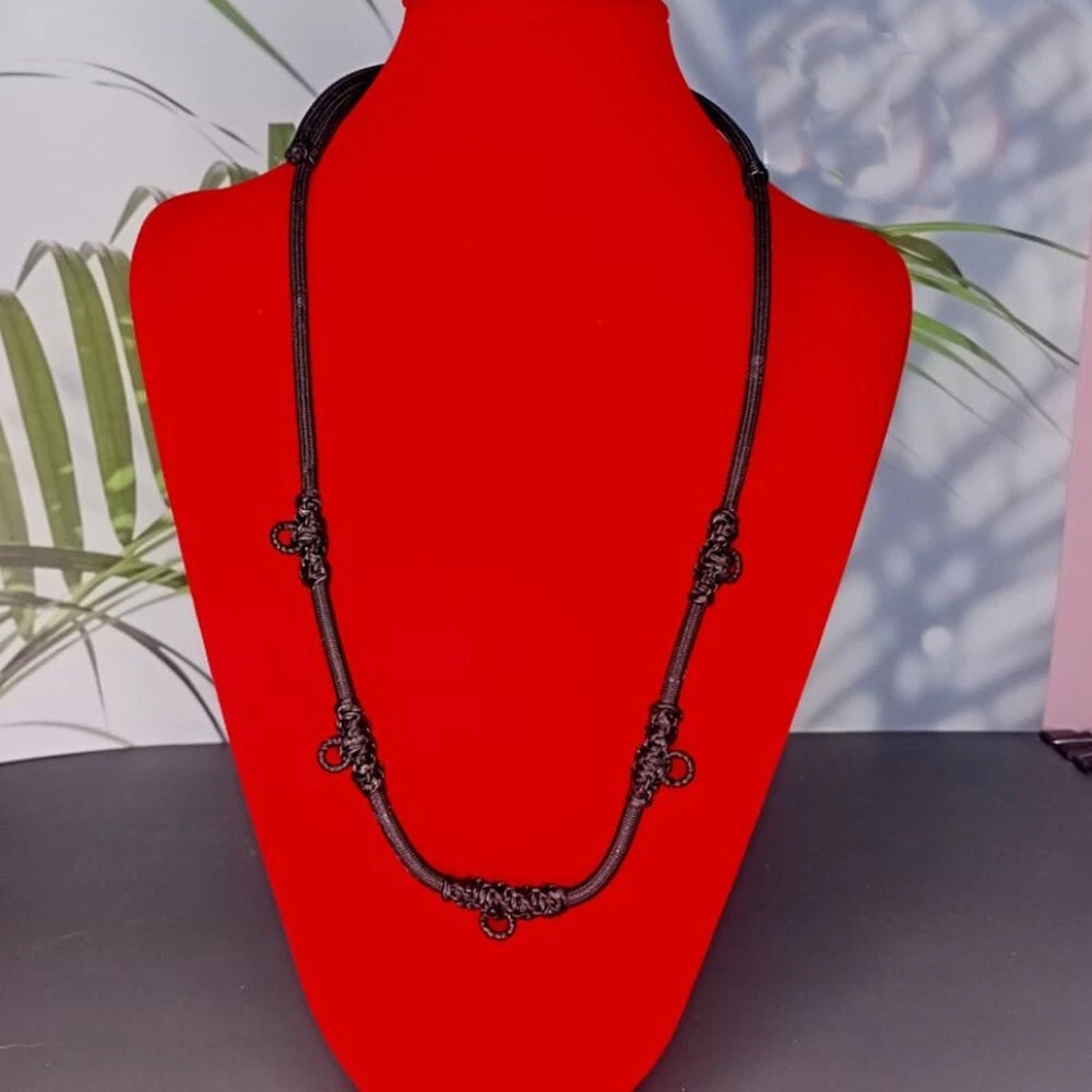 Necklace Thai Buddha Amulet length 28”, can hang 5 Buddha amulets. New Quantity : 1 pc Length : 24" - 28" 5 Hook Condition : good condition Add some luck to your life with this beautiful handmade necklace from Thailand. The black rope necklace features a 5-hook amulet pendant with a Thai Buddha design. The necklace is 28 inches long and is perfect for meditation or everyday wear. This necklace is a great gift for anyone interested in Buddhism or spirituality. It is made with care and attention to detail, making it a unique and special piece. The necklace is also perfect for collectors of prayer beads or other religious items. Add this beautiful necklace to your collection today and bring some luck into your life.