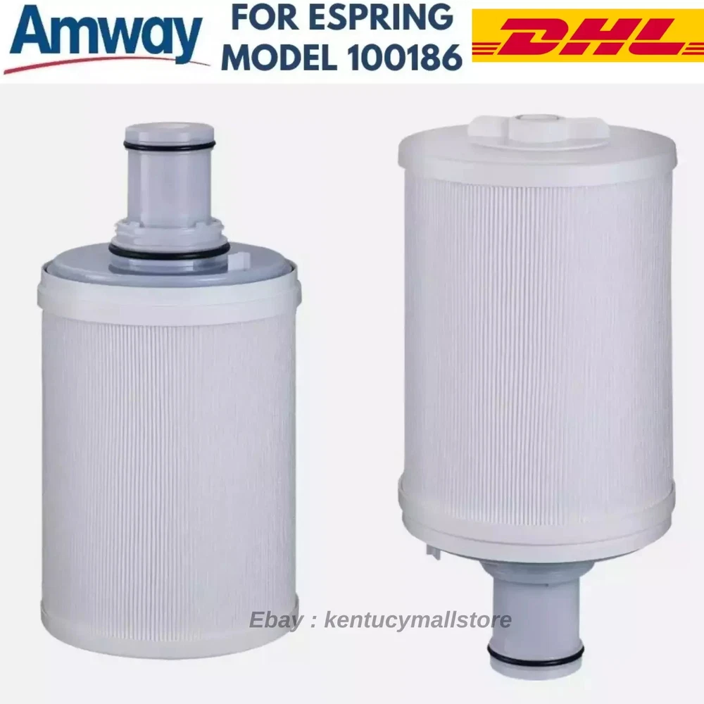 1 X ESpring Replacement Water Filter Purifier Cartridge UV Technology 100186 Amway eSpring Water Treatment System Replacement Cartridge with Pre-Filter & UV technology eSpring™ 100186 **Please take note that this catridge fit eSpring Water Filter model 10.0186 only not 10.0185 or other model number . Do make sure your eSpring Water Filter is the same model. No return will be entertained if your eSpring Water Filter is different from 10.0186. Amway eSpring is a water purifier system offered by Amway, a well-known direct selling company. The eSpring system is designed to improve the quality of tap water by removing impurities and contaminants, providing clean and safe drinking water. It typically consists of a water purifier unit that utilizes a combination of carbon filtration, UV light technology, and other filtration methods to remove various pollutants and microorganisms from the water. The eSpring system is often marketed as providing better-tasting water while also being more convenient and cost-effective compared to buying bottled water. Additionally, Amway typically emphasizes the environmental benefits of using a water purifier system over disposable plastic bottles. Overall, eSpring is positioned as a solution for households looking to improve the quality of their drinking water and reduce their environmental impact. Product Description Enhance the taste, odor, and clarity of your water with the eSpring Water Treatment System Cartridge. This system effectively reduces over 140 potential health-effect contaminants and eliminates more than 99.99% of waterborne, disease-causing bacteria and viruses using ultraviolet light technology, while preserving beneficial minerals such as calcium, magnesium, and fluoride. The eSpring Water Treatment System features a patented monitoring system that informs you of the remaining cartridge life and system status, ensuring low energy costs as it operates at tap temperature. The system's wireless power technology guarantees safety by preventing water from coming into contact with electrical components. The eSpring Water Treatment System also offers an easy-to-replace cartridge that requires no special tools, with a design that lasts for 5,000 liters or one year, whichever comes first. Award-Winning Product The eSpring Water Treatment System has received numerous awards, including Frost & Sullivan's Choice of Water Filtration Company of the Year for Asia Pacific since 2010 and the Reader's Digest Most Trusted Brand Gold Award in Malaysia and Asia since 2005. It has also been certified by NSF International (NSF/ANSI Standards 42, 53, 55, 401, P473, P477) and has earned the Gold Seal from the Water Quality Association. The eSpring Water Treatment System is the world’s No. 1 selling brand of home water treatment systems, based on a Verify Markets study of 2018 global sales. Advisories/Precautions The UV lamp in the filter cartridge contains mercury. Please dispose of it in accordance with local, state, or federal laws.