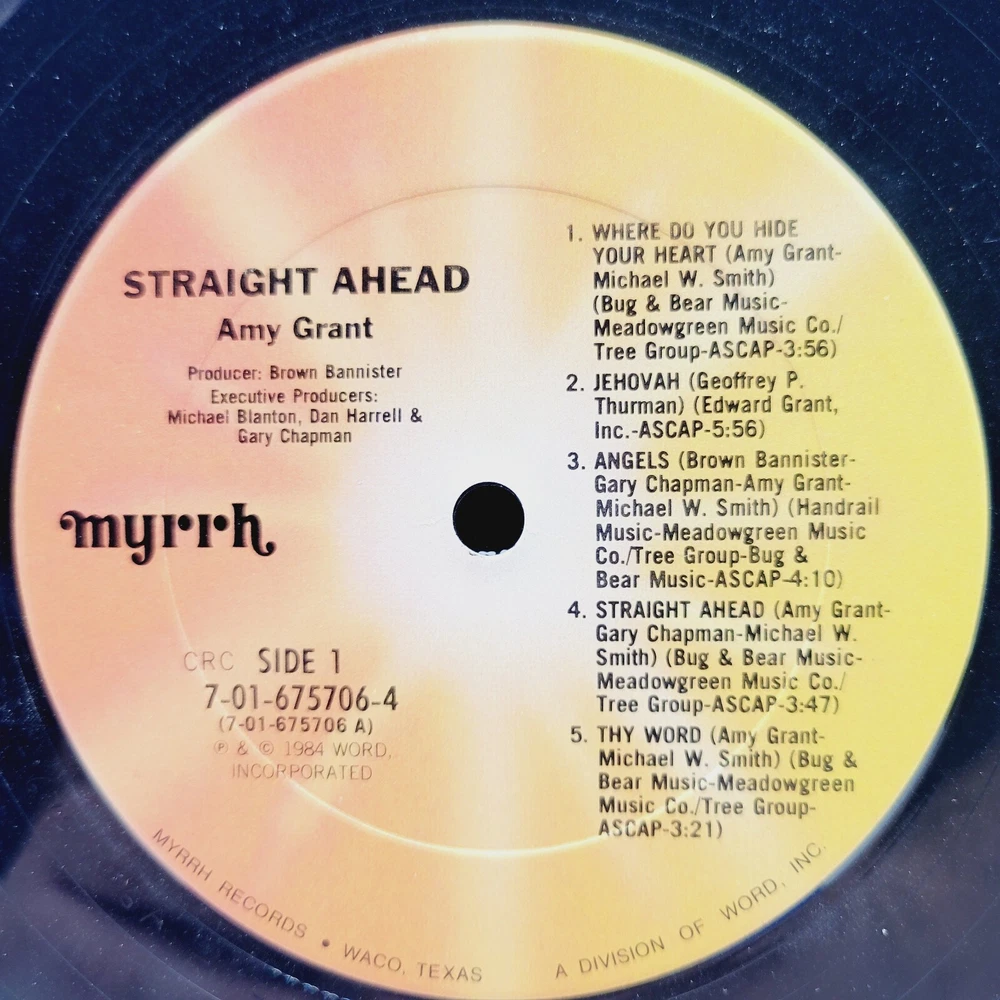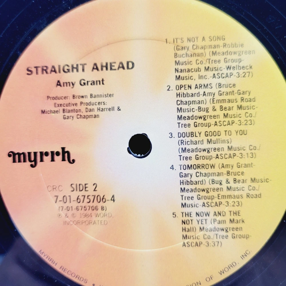 Amy Grant Straight Ahead - 1984 Myrrh Records - 33RPM 12" Vinyl Record has been visually inspected, and any visual imperfections are shown as best as possible in the pictures. Record needs to be clean. Please see all pictures for condition details. Please feel free to ask any questions.