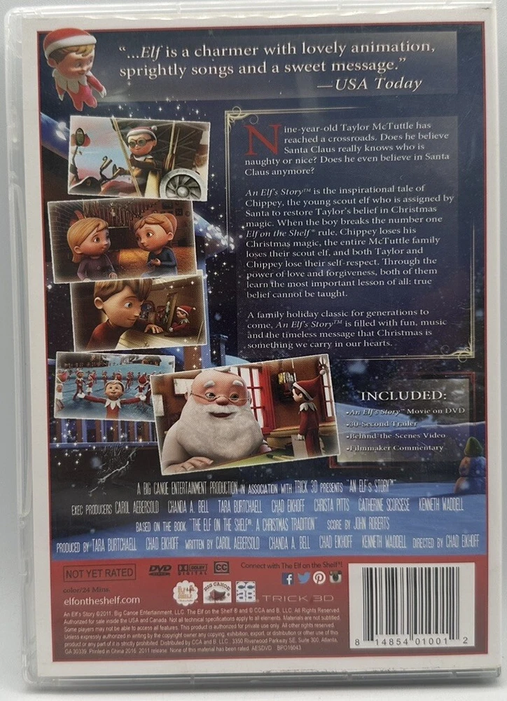 This DVD is perfect for anyone who loves Christmas, family, and teen movies. It features an animated elf who comes to life and embarks on a magical journey to become the perfect elf. The DVD includes special features such as commentary and a documentary. The case type is a standard jewel case and the edition is a standard edition. The movie is in CDF format and has a run time of 24 minutes. The language is English and the subtitles are available in English. The movie was released in 2011 by Barnes Noble Consign.