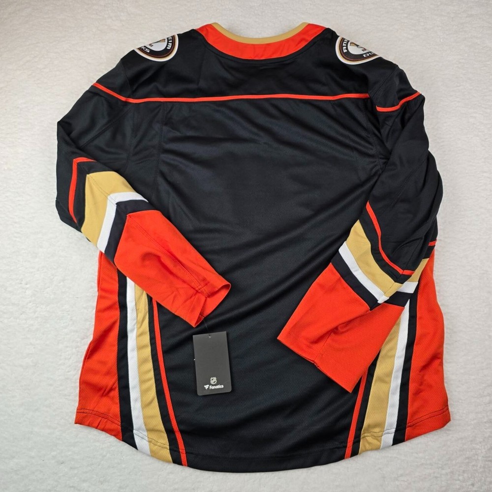 Show your support for the Anaheim Ducks with this officially licensed Fanatics home hockey jersey. The black jersey features the team's logo on the front and is made from high-quality materials for maximum comfort and durability. It's perfect for any fan of the National Hockey League and the jersey is available in men's size XL. This jersey is a must-have for any Anaheim Ducks fan and is great for wearing to games or just around town. The jersey is made in Indonesia and is perfect for both men and women who want to show their support for the team. Get yours today and let's go Ducks!