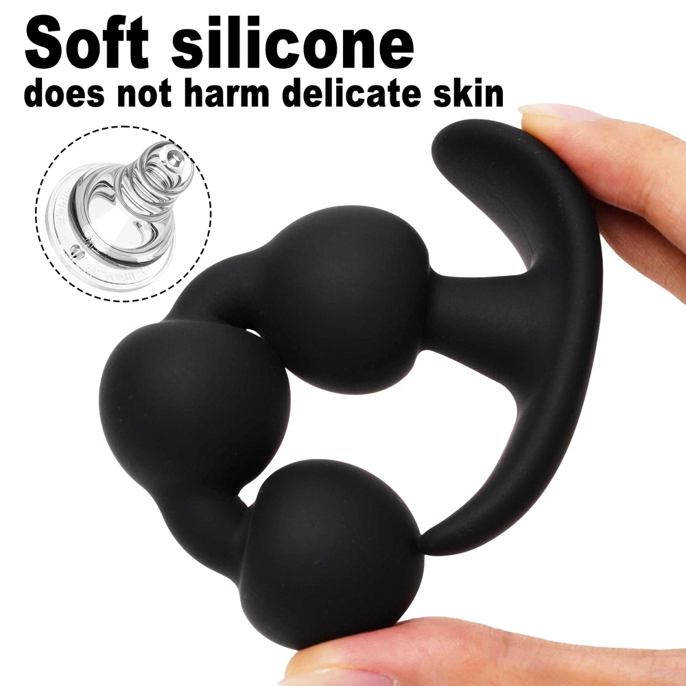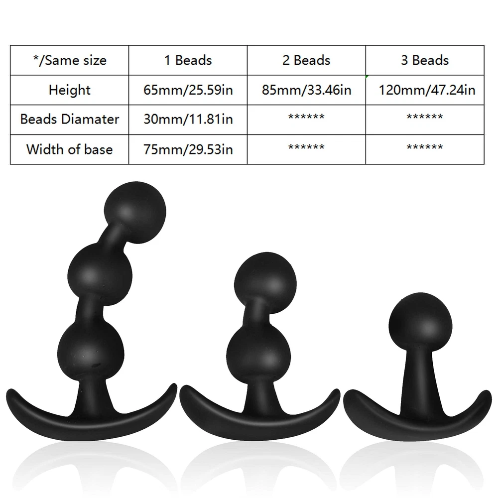 Private Shipping BDSM Anal Butt Plug Beads Prostate Massager Wand Stimulator Vaginal Anus Sex Toys Adults Sex Aid US Shipping Specification Material: Body safe silicone Color: Black Anal Beads Diamater: 30mm Width of base: 75mm Height: 1 Anal Bead: 65mm 2 Anal Beads: 85mm 3 Anal Beads: 120mm Net Weight: S: 40.3g M: 55g L: 72.8g Package Include: 1* Anal Plug 1. Made of high quality silicone, this Anal Bead Butt Plug is malleable and smooth, silky smooth, soft to touch, healthy, safe and skin-friendly. Sex toy plays well with any water-based lubricant and your sexual experience is guaranteed! 2.This anal trainer has a streamlined design that perfectly fits the inner walls of the anus and vagina. With a handle for easy grip, it's easy to pull out the anal balls without worrying about the anal plug slipping in. 3.This anal sex toy is very soft and can be adjusted to different bending requirements without damaging the anus or prostate. From the first bead into the anus, you will experience escalating stimulation.