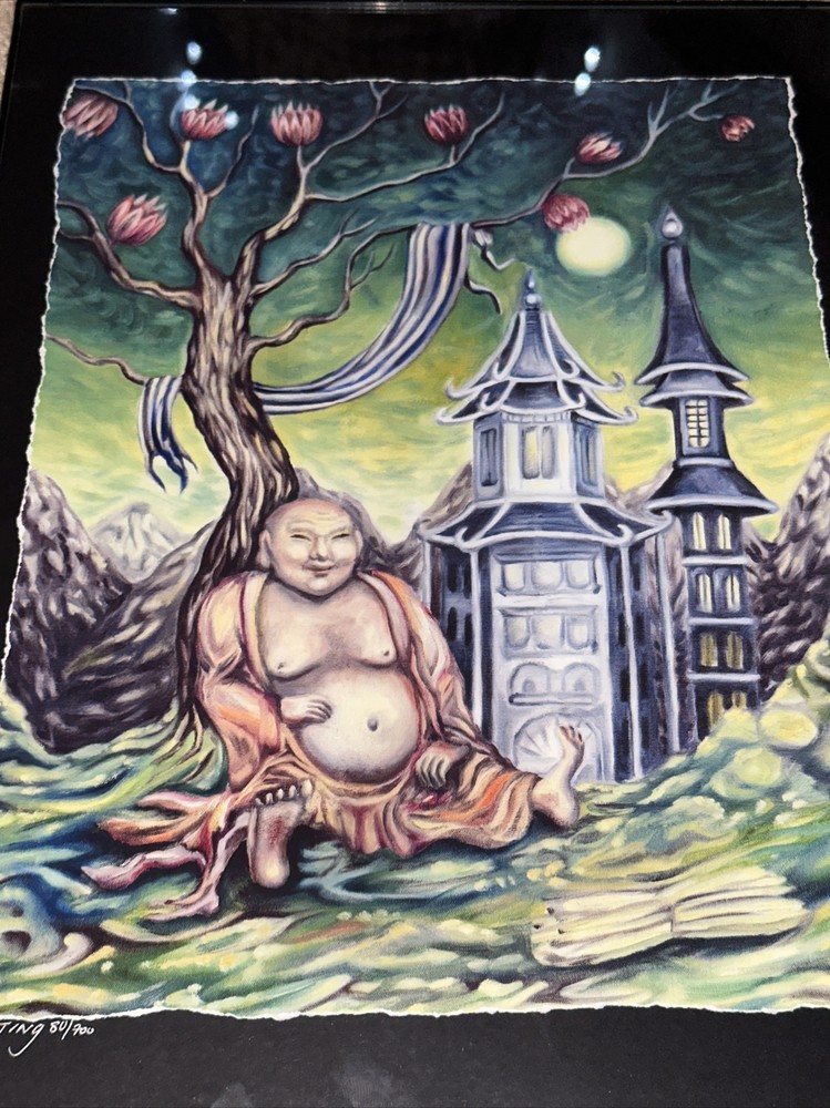 Anastasia Mak Original #80 Of 700 Limited Edition Cloth Paniting Of Buddah. Framed & Original Painting Number 80/700 Signed by Artist AM Anastasia Mak 16” X 12” All resting