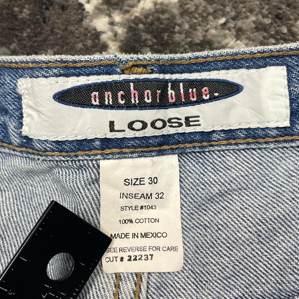 Fit: Regular Size: 30 Pattern: Solid Style: Straight Type: Jeans Size Type: Regular Pocket Type: 5-Pocket Design Model: Anchor Blue Loose Waist Size: 30 in Fabric Wash: Light Color: Blue Features: Comfort, Easy Care, Pockets Brand: Anchor Blue Inseam: 32 in Country/Region of Manufacture: Mexico Seller Notes: “Great condition, no noticed marks or stains.” Closure: Button, Zip Season: Fall, Spring, Summer, Winter Theme: 90s, Art, Biker, Bohemian, Funny, Gothic, Grunge, Hip Hop, Hippie, Hipster, Motorcycle, Movie, Music, Nature, Nautical, Preppy, Punk, Retro, Rock, Tattoo, USA SKU: K Accents: Button, Logo, Zipper Department: Men Vintage: Yes Fabric Type: Denim Material: Cotton Rise: Mid (10-12 in)