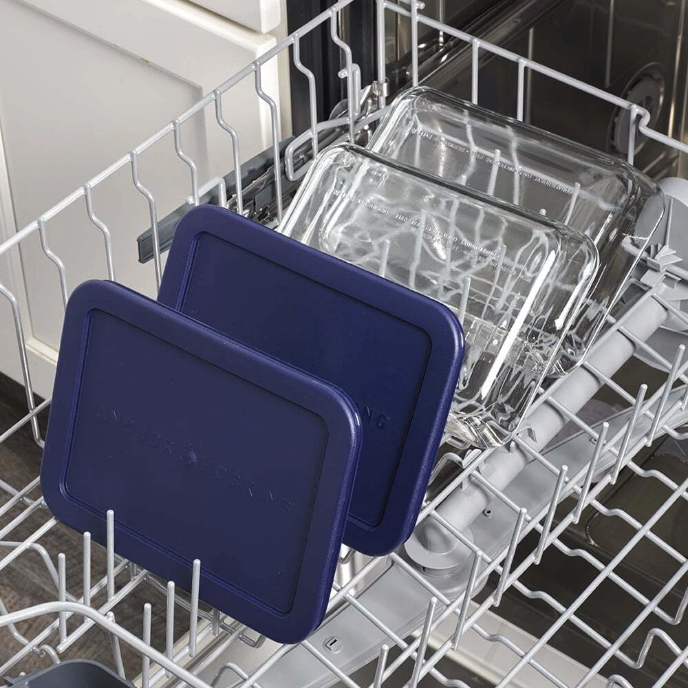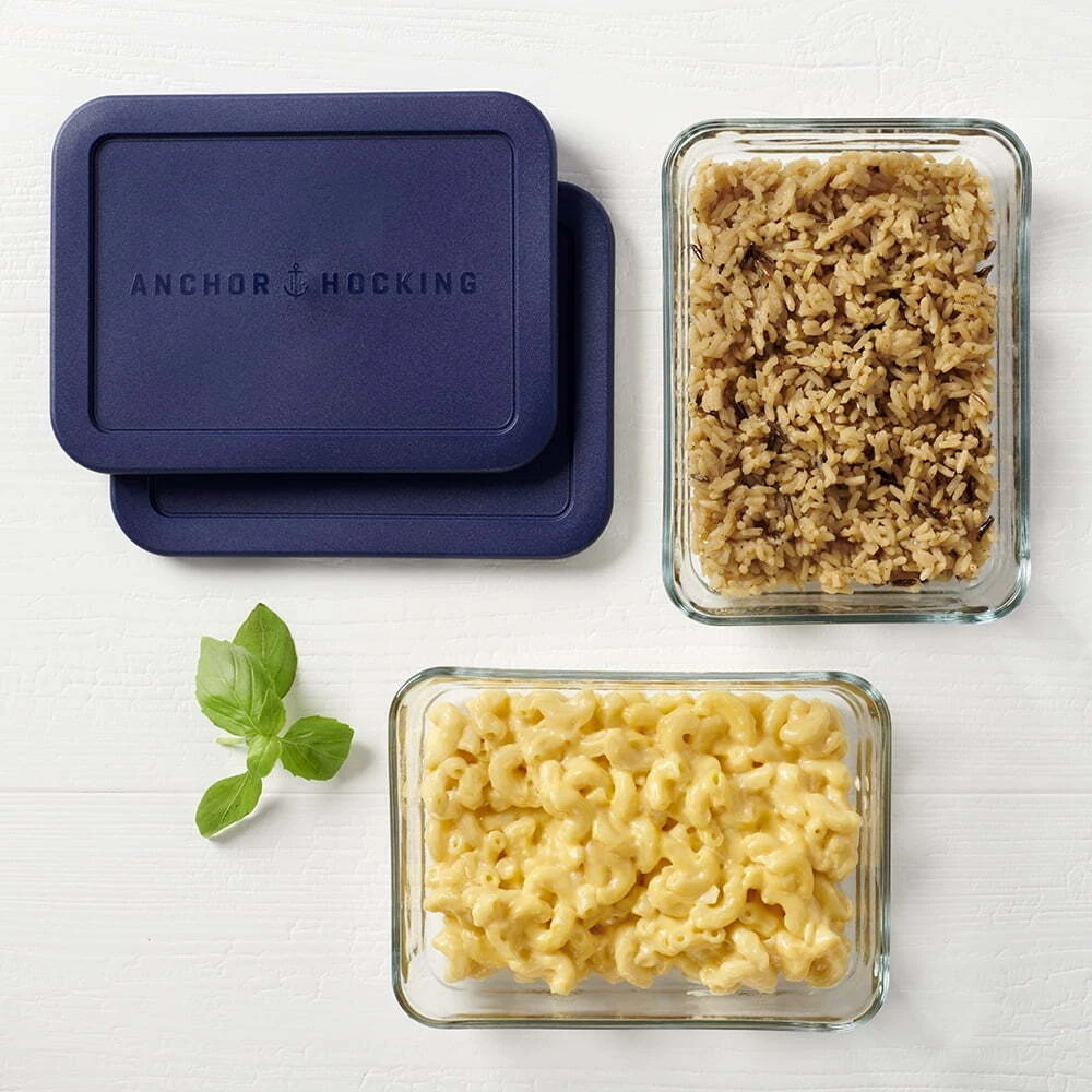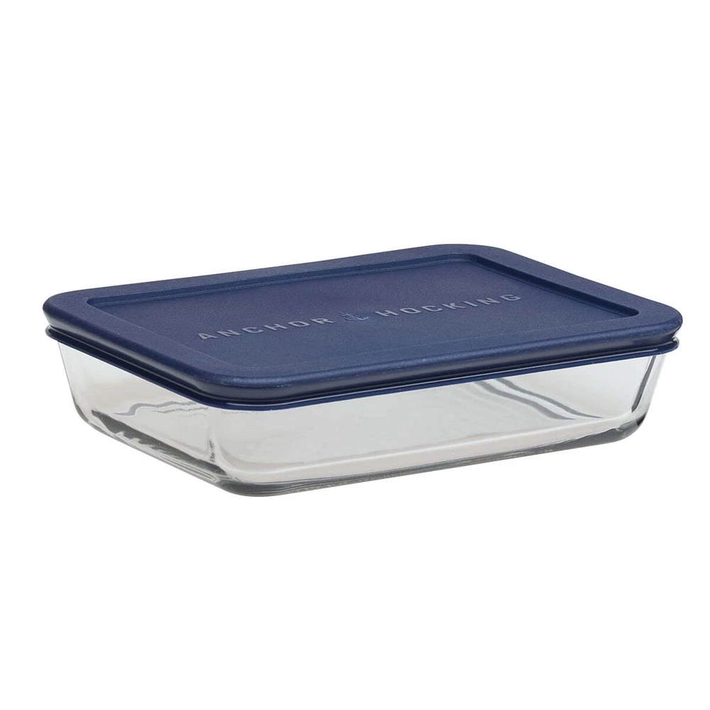 This Anchor Hocking 4pc 3 cup Rectangle Food Storage Value Pack set includes two 3 cup rectangle glass food storage vessels with quality conventional blue lids. Anchor Hocking is known for high-quality glass Tabletop and Bakeware items. Glass is microwave, pre-heated oven, refrigerator, freezer, and dishwasher safe. Plastic lids let you cover any leftovers and conveniently store them in the refrigerator. The lids allow you to take your food anywhere. Lids are BPA-free and top-rack dishwasher safe. This set is great for registries, holidays and new homeowners! Anchor Hocking 4pc- 3 cup rectangle food storage value pack Set Contains: 2- 3 cup rectangle glass food storage with blue lids Tempered Tough Glass that is Microwave, Oven, Freezer, & Dishwasher Safe Made of glass, which does not stain or absorb odors Lids are BPA Free- Free of harmful chemicals Features 5 year warranty