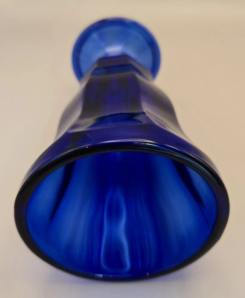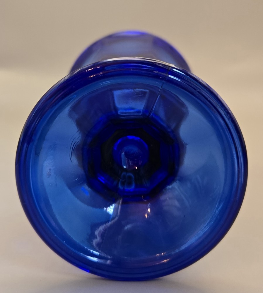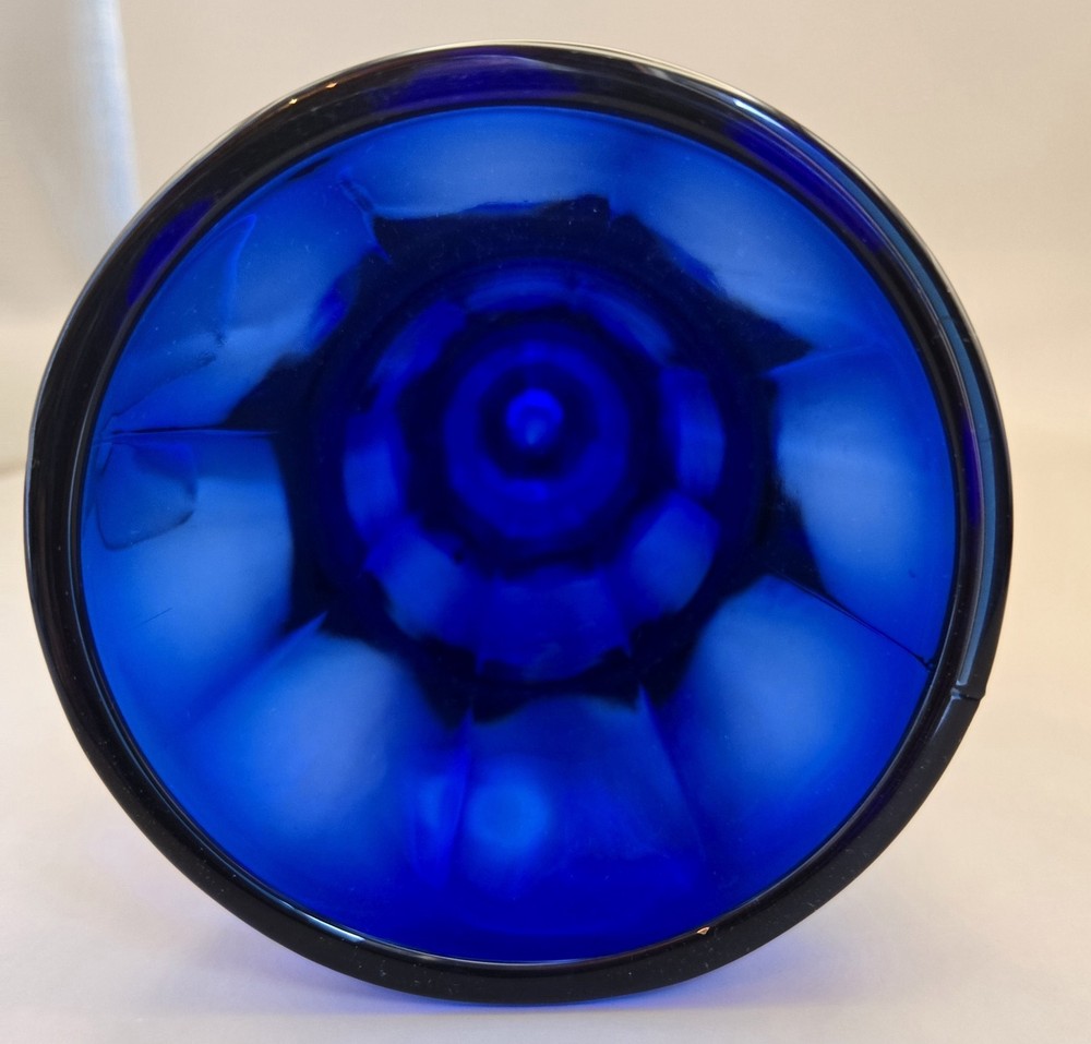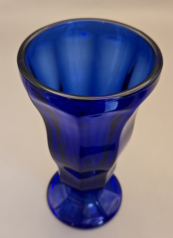 Time Period Manufactured: 1950-1959 Item Diameter: 3" opening Style: Mid-Century Modern Care Instructions: dishwasher Backstamp: Impressed Theme: American Item Weight: 1 lb Country/Region of Manufacture: United States Occasion: All Occasions, Party, Wedding Handmade: Yes Product Line: Depression Glass Type: Drinkware/Stemware Pattern: Cobalt Blue Production Technique: Fused Glass Capacity: 1 Main Color: Cobalt Blue Material: Glass Color: Blue Production Style: Pressed Glass Vintage: Yes Brand: Anchor Hocking Original/Reproduction: Vintage Original Item Height: 6.75" MPN: N/A Type of Glass: Cobalt Department: Unisex Adults Original/Licensed Reproduction: Original Finish: Glossy Seller Notes: “No noticeable scratches. No chips cracks. vintage used” Features: Decorative, Footed, Ice Cream Dish, Flower Vase, Vintage Signed: No