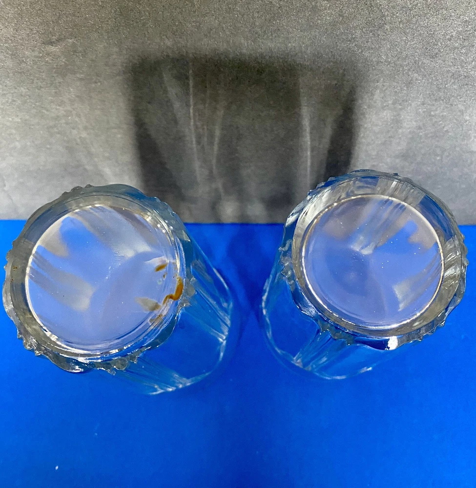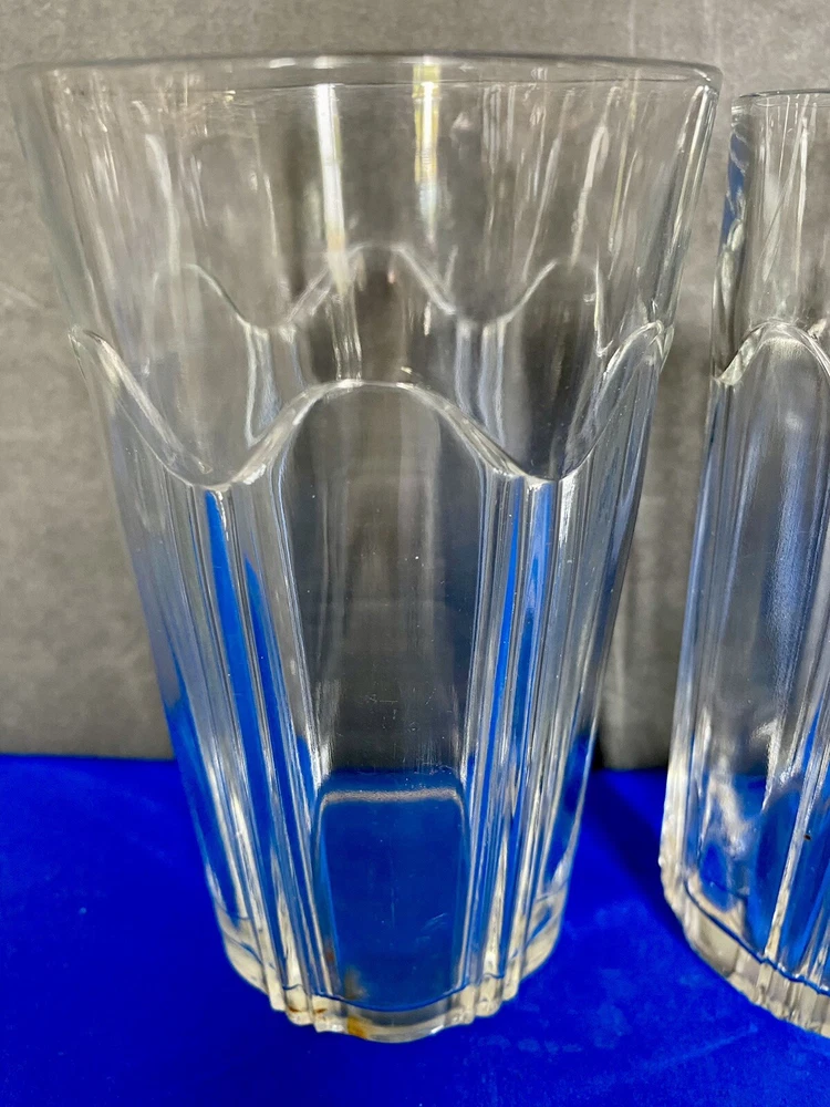 This is a nice Depression Era Set of Two (2) Anchor Hocking Colonial Clear Knife & Fork 11 oz Flat Water Tumbler in excellent preowned condition with no chips, flakes, or cracks. They each measure 5 1/8 inches tall.