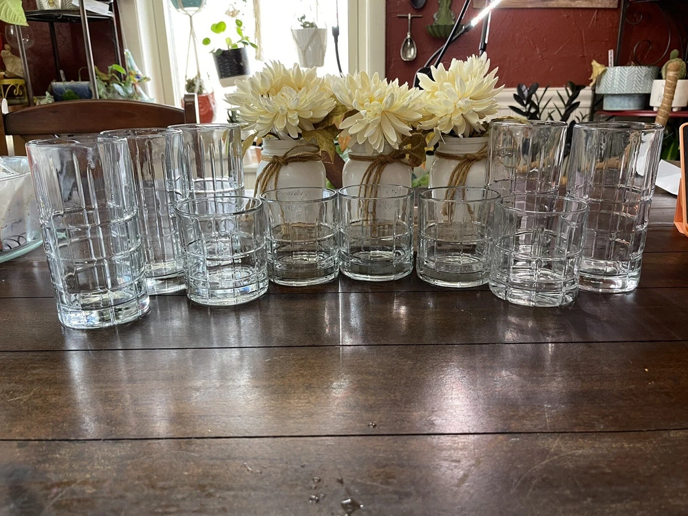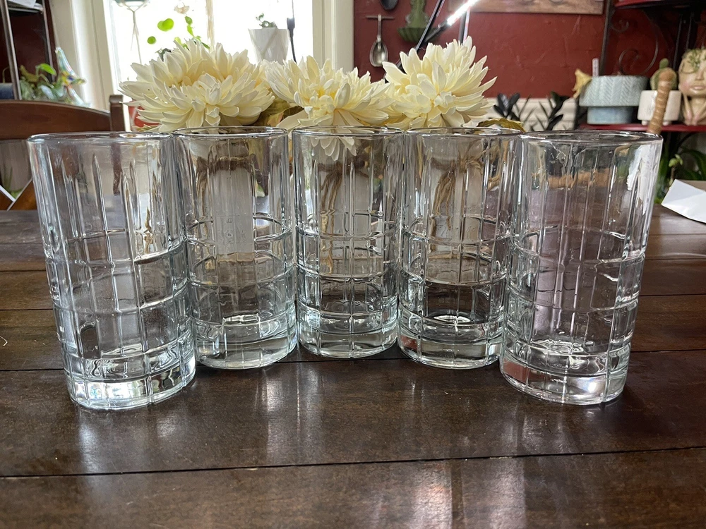 Brand:Anchor HockingOrigin:United StatesUPC:Does not applyItem Diameter:3.25 in.Shape:RoundGlassmaking Technique:FusedItem Height:3.5 inColor:ClearProduction Style:Pressed GlassPattern:Tartangtin13:Does not applyType:TumblerProduct Line:TartanOccasion:All OccasionsCountry/Region of Manufacture:United StatesNumber of Items in Set:Four-PieceStyle:Mid-Century ModernMaterial:Glass