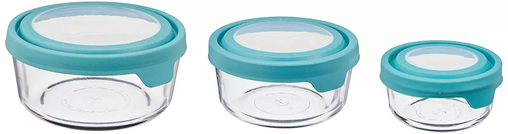 Glass is pre-heated oven safe up to 425 degrees F. Our tempered tough glass is also microwave, freezer, and dishwasher safe, and is up to 100% stronger than regular glass. True seal a glass food storage containers help protect the flavor of food and will not stain or absorb odor - they are also stackable and nestable for easy storage. True seal a lids are designed to prevent spills and leaks, and lock air out while sealing freshness in. Anchor Hocking glass is made in USA. INCLUDES: This Anchor Hocking glass storage set contains (1) 2-cup, (1) 4-cup, (1) 7-cup round food storage containers with airtight mineral blue TrueSeal lids. DURABLE: This glass food storage container set is microwave, pre-heated oven, refrigerator, freezer, and dishwasher safe; airtight lids are BPA Free and top rack dishwasher safe. SAFE: Anchor Hocking glass is healthier than plastic and metal. It will not warp, stain, retain smells, or leach dangerous chemicals into food or drinks. FIVE-YEAR : Backed by a protective limited five-year , these glass meal prep containers promise to impress for many years to come.