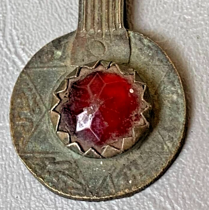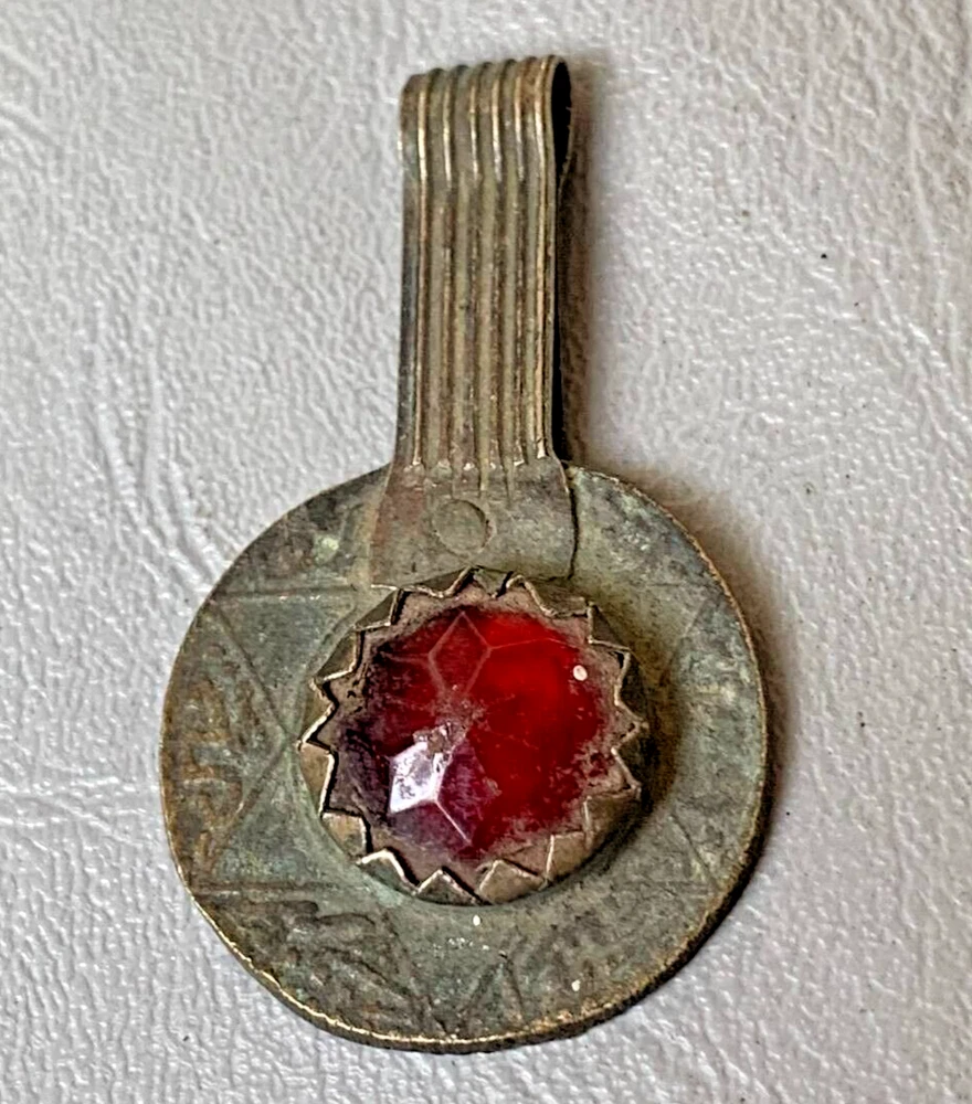 Ancient BRONZE AMULET VINTAGE ANTIQUE RED STONE