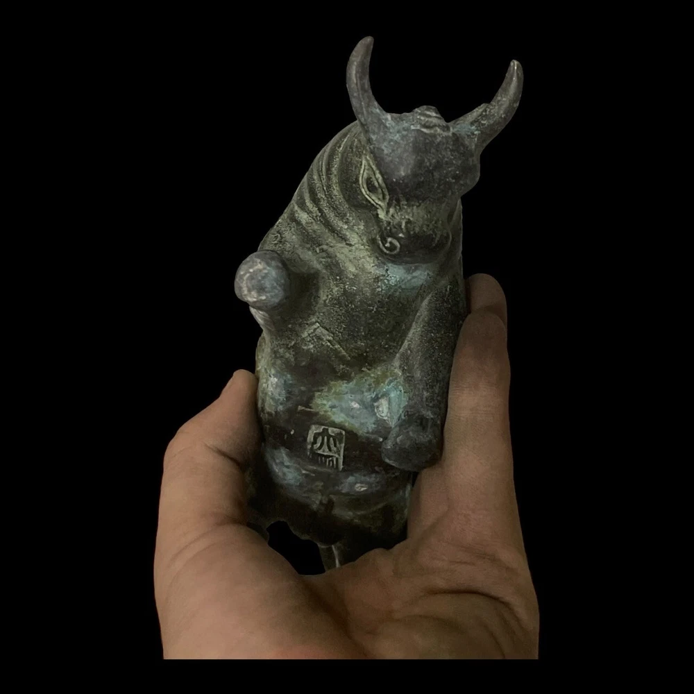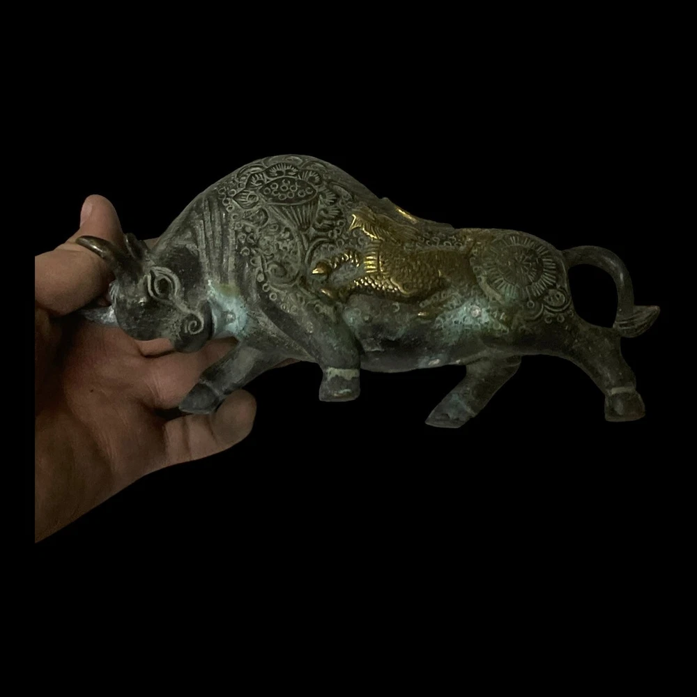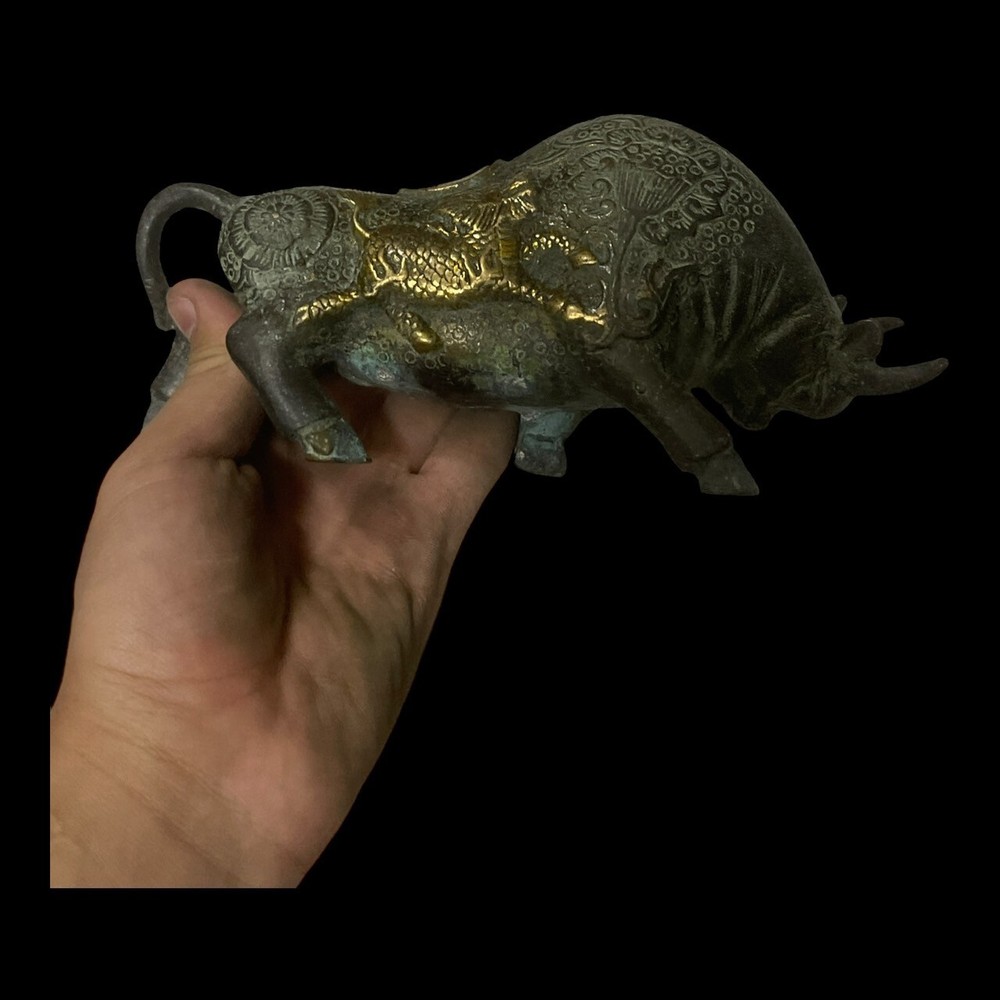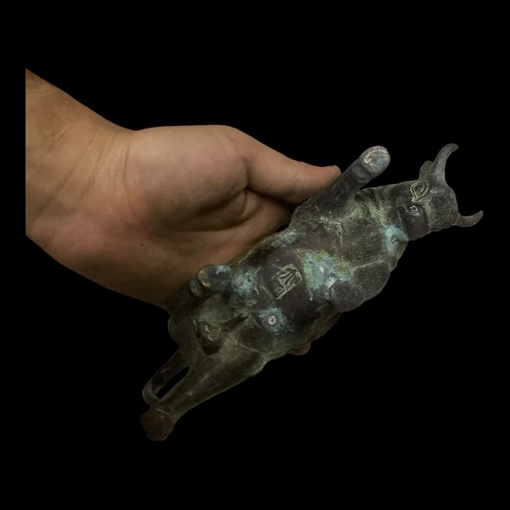 Ancient Greek Gold Gilded Bronze Raging Bull Statue