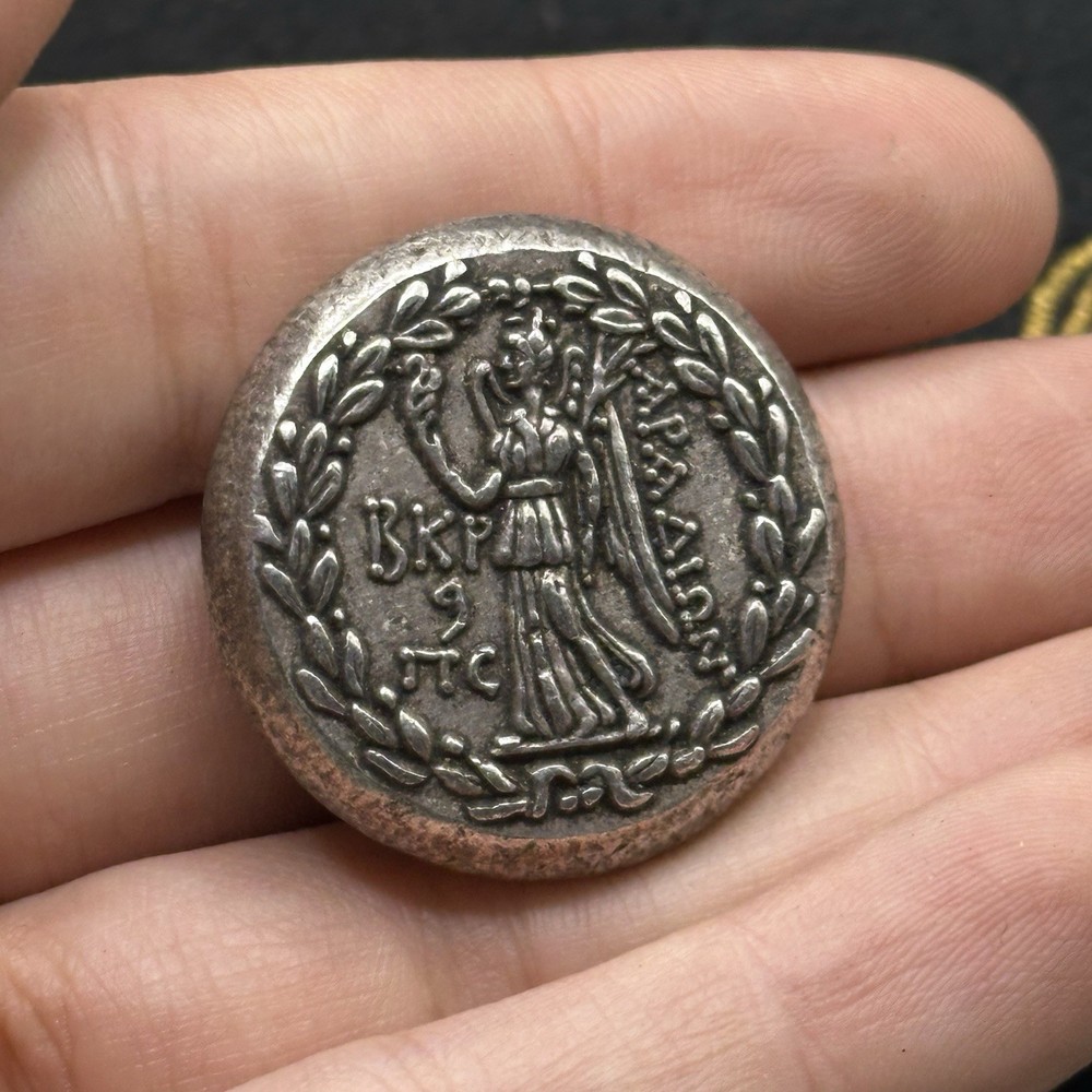 Ancient Greek silver-coated king with crown collectible coin