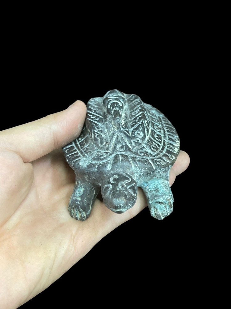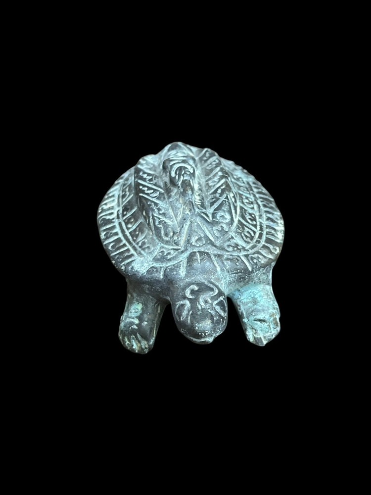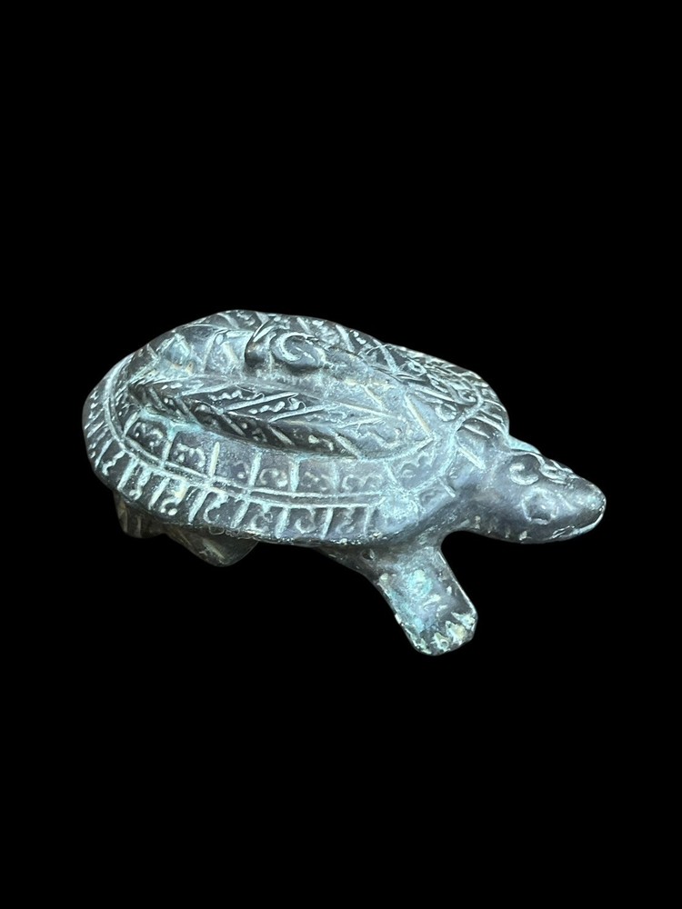 Ancient Indo-Greek bronze turtle figur sculpture with a rich patina, showcasing intricate details and craftsmanship. Made from high-quality bronze, this figurine captures the essence of ancient artistry and design. The rich patina adds to the historical significance and aesthetic value of the piece, making it a unique and collectible item for those interested in antiques and ancient artifacts.