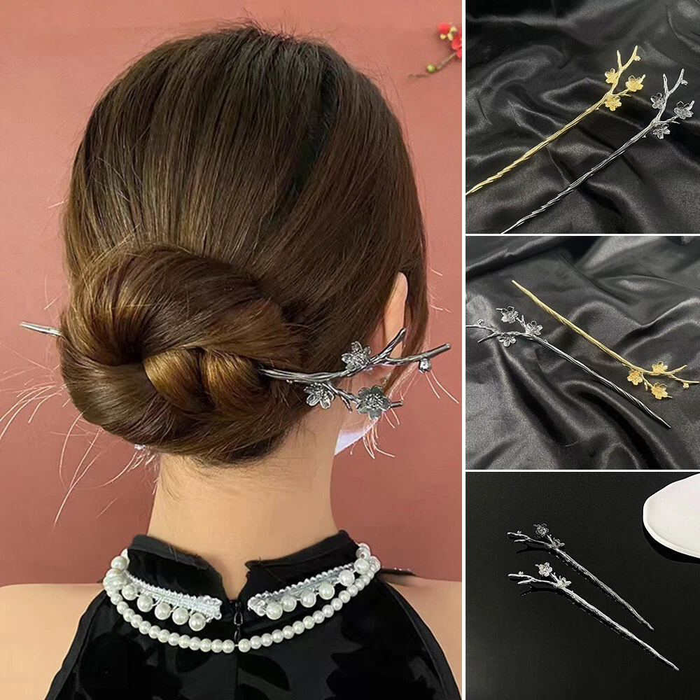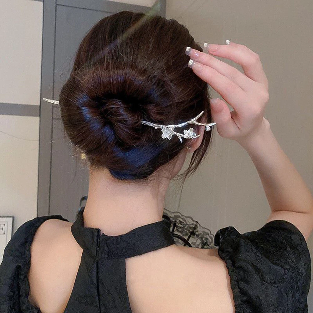 Ancient Metal Flower Hairpin Alloy Hair Bun Forks Elegant DIY Hair Chopsticks