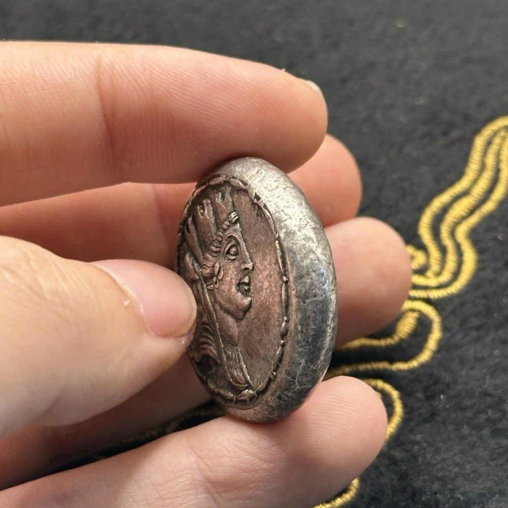 Ancient Roman Silver King with Crown Coin Collectible Artifact