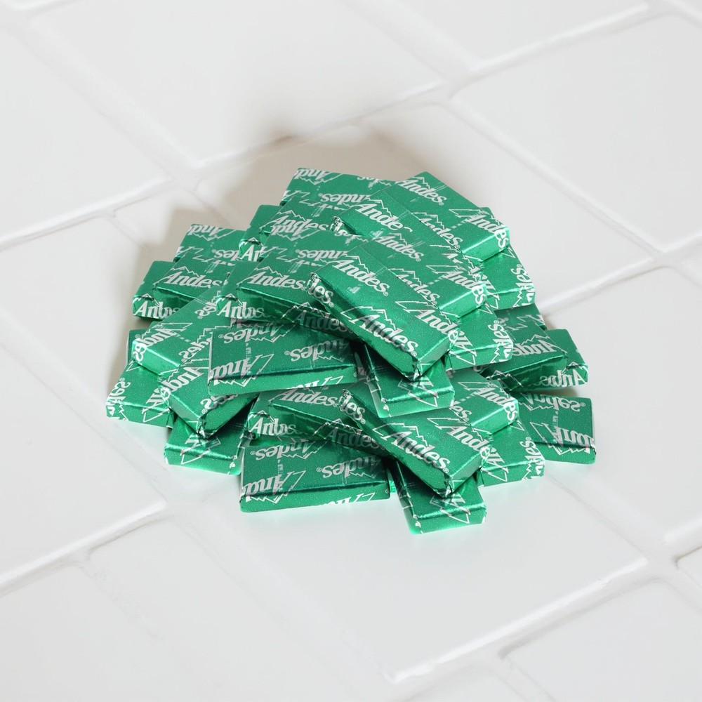 << The item is a Size 1 Lb. >> Indulge in the refreshing taste of Andes Crème de Menthe chocolates. Each piece features smooth layers of cool mint creme sandwiched between rich chocolate, individually wrapped for freshness. Perfect for candy bowls, parties, baking, or after-dinner treats, this bulk 1 lb bag ensures you’ll have plenty to share. A timeless classic, Andes mints bring elegance and flavor to any occasion. 🍫 Andes Crème de Menthe Chocolates – 1 lb Bulk Bag Enjoy the cool, refreshing flavor of Andes Crème de Menthe , the iconic after-dinner mint. Each piece features smooth mint creme layered between rich chocolate , individually wrapped in the classic green foil for freshness and style. This bulk 1 lb bag is perfect for filling candy dishes, sharing at parties, or adding a touch of mint-chocolate goodness to baked desserts like brownies and cookies. A timeless favorite, Andes mints are loved by all ages. 1 lb bulk bag of Andes Crème de Menthe chocolates Individually wrapped in signature green foil Refreshing mint creme with smooth chocolate layers Great for parties, baking, or after-dinner treats A nostalgic candy classic Weight: 1 lbs (approx. 75 pieces) Ingredients: Sugar, Palm Kernel Oil, Cocoa, Nonfat Milk, Lactose, Soy Lecithin, Peppermint Oil, Artificial Flavor Nutrition facts: ~50 calories per piece, contains milk and soy 1 Lb. Indulge in the refreshing taste of Andes Crème de Menthe chocolates. Each piece features smooth layers of cool mint creme sandwiched between rich chocolate, individually wrapped for freshness. Perfect for candy bowls, parties, baking, or after-dinner treats, this bulk 1 lb bag ensures you’ll have plenty to share. A timeless classic, Andes mints bring elegance and flavor to any occasion.