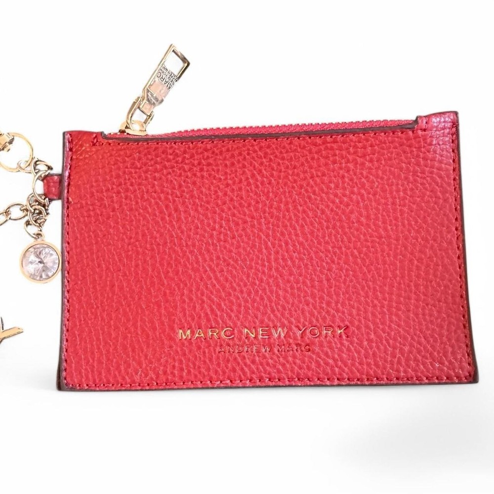 Keep your cards and keys stylishly organized with this vibrant red leather wallet keychain by Marc New York (Andrew Marc line). Crafted of genuine leather, it features: Keychain hook and “MNY” logo charm in gold‑tone metal Faux‑diamond sparkly charm for a touch of glam, more of a darker red in person Inside pocket for cards or folded bills Compact dimensions (approx. 4″ W × 6″ H)—perfect for on‑the‑go essentials Pre‑owned condition, gently used with minimal wear Whether clipped to your bag or carried solo, this piece blends function and fashion effortlessly. #MarcNewYork #AndrewMarc #RedWallet #KeychainWallet #GoldCharms