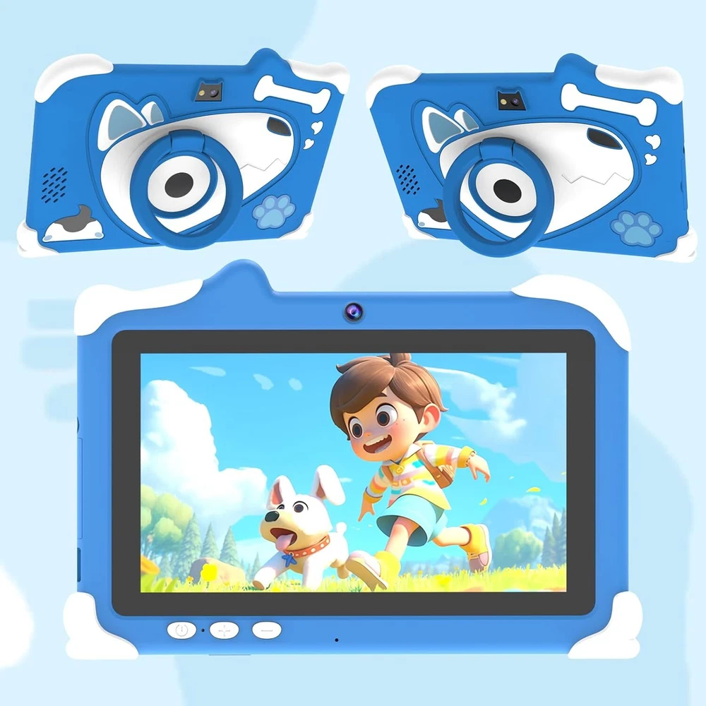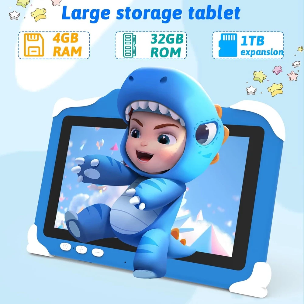 Android 12 Kids Tablet, 7 inch Tablet for Kids, 4GB RAM 32GB ROM Blue Product Details 【New Android 12 Kids Tablet】 IWEGGO kids tablet equipped with the latest Android 12 operating system and powerful quad-core processor, ensures fast running when opening applications and multitasking, pre-installed kids apps, specially designed for different age kids, different color for choice. 【4GB +32GB Performance Kids Tablet】 The toddler tablet adopt 4GB RAM (2GB fixed memory, 2GB virtual memory) and 32GB ROM and supports Micro SD card expand up to 512GB, so that you can storage more photos and videos. Tablet passed the GMS certification, you can download much kids apps, support widevine L1, Netflix. 【Parental Control Tablet for Kids】 This kids tablet support parental control function, parents can limit screen time, set password, set separate profiles for each kid, add or block apps, filter unsafe web pages. Ensure your kid online safety through the parental control mode. 【Eye Protection Screen】 7 inch tablet for kids with quality 1024x600 IPS HD display screen. clear and bright screen provides outstanding visual experience when kids reading and watching the videos. automatic brightness adjustment can better protect your eyes, reduce eye fatigue. 【Ideal Gift Choice】 This kids tablet with slim and compact body, with soft and lightweight protective case, more durable, it can protect your tablet when drops. And the adjustable plastic stand can stand tablet stable. This tablet PC can bring a lot of fun and knowledge for your kids learning while playing. The toddler tablet is an ideal gift for birthday, Christmas, holiday season etc.