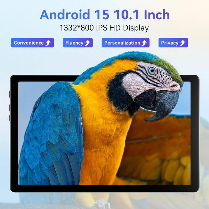 Android 15 5-Core 10inch Tablet,16GB Ram+32GB ROM +1TB Expand,IPS Display, Widevine L1, 5G Wifi, 5MP+8MP Camera, 5000mAh, Bluetooth 2.4,White Android tablet is a good choice for birthday or a gift for family and friends. Our Tablet PC professional team focuses on customer service, adhering to the principle of customer first, with professional experience and high quality service, if you receive any problematic products, please feel free to let us know. We will provide you with a satisfactory and professional solution within 24 hours. We offer a 30-day money-back guarantee and 12 months warranty for quality issue. Android 15 More Personalization:The tablet is powered by the latest Android 15 operating system, which improves the tablet's performance and efficiency giving users more control over their data and personal information, and introduces tighter privacy controls and security features to enhance its user protection and user assistance features. Updates include new themes and AI-generated wallpapers, more control over health-related features and safety settings, and improved functionality for a range of accessibility features. This makes the tablet easier and more efficient to use and a great addition to your life! Updated Octa-core Processor:Android 15 tablet comes with an octa-core processor, the new A523 processor featuring the A55 architecture core. It offers more than a six-fold increase in performance compared to quad cores. Capable of supporting a maximum frequency of 2.4 Ghz, this tablet utilizes a low-power 22nm process for lighter operation and faster processing with lower heat and power consumption. It supports more apps, improves graphics performance and processing speed, and delivers a smooth video experience. 16GB+32GB/1TB Expansion+Widevine L1 :Tablet is expandable storage of microSD card/TF card up to 1TB, under 16GB RAM (3+13 expansion)+32GB internal storage, without worrying about the storage capacity of the tablet itself. One tablet can handle many entertainment needs such as video, music, e-books, online courses, internet, games, etc. Support Widewine L1, it will be able to transmit high-definition videos of high-quality video streaming platforms such as netflix,video. 10 inch High-Definition Touch Screen:10.1 inch tablet computer has an 1332*800 IPS HD touchscreen display excellent visual experience from all angles, presenting you with richer picture display, clearer portrait capture, more delicate detail depiction, large screen soft light curtain can reduce the visual pressure on your eyes and relieve fatigue. 5MP + 8MP dual cameras are designed to meet your daily needs for great photos and clear video chats. Take photos easily anytime and anywhere. Long Lasting Battery & Bluetooth5.3:10 inch tablet is powered by a long-lasting, reusable 5000mAh Li-ion battery that easily gives you up to 8 hours of reading, browsing, watching movies, and playing games, giving you more time for entertainment and surfing the web. The tablet has built-in Bluetooth 5.3 and supports 5G/2.4G dual-band WIFI connection. Suitable for coffee shops, offices, bedrooms and more. The strong reception signal can keep you well connected at all times, so you can enjoy working, talking to family, and connecting with friends anytime and anywhere. Ideal Choice For Gift :Android tablet is a good choice for birthday or a gift for family and friends. Our Tablet PC professional team focuses on customer service, adhering to the principle of customer first, with professional experience and high quality service, if you receive any problematic products, please feel free to let us know. We will provide you with a satisfactory and professional solution within 24 hours. We offer a 30-day money-back guarantee and 12 months warranty for quality issue.