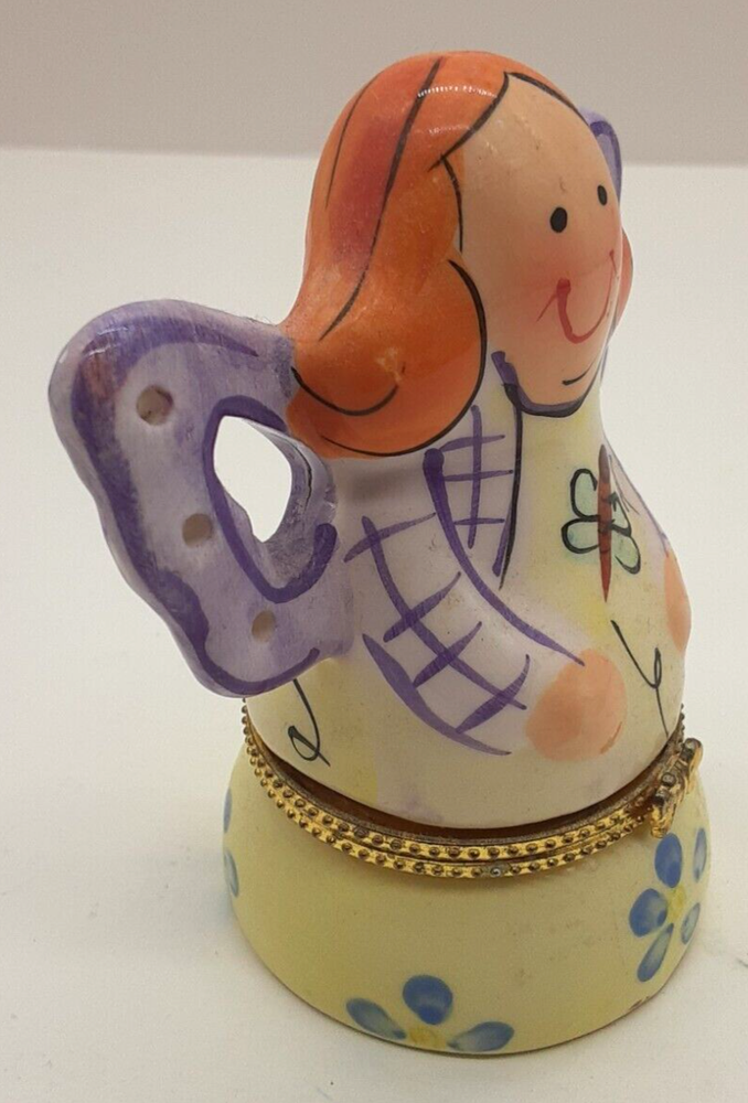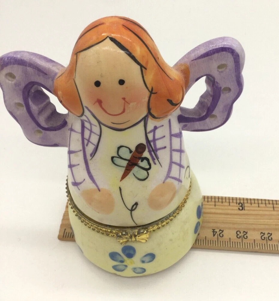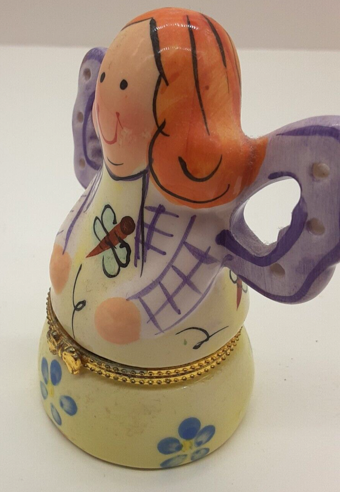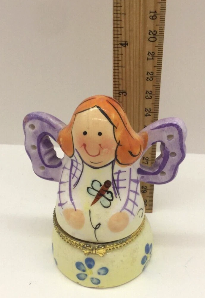 Angel Fairy Hinged Trinket Box Jewelry Storage Ceramic 3 3/4" x 3" *Please look at pictures as they are part of the description/details. *In good preowned condition. *Thanks for looking! WE APPRECIATE OUR CUSTOMERS THANK YOU FOR SHOPPING WITH US!! Terms and Conditions: Once a purchase has been made, it is legally binding contract. Payments: Payment is due when purchase is made, Thank you for your prompt payment. *If payment is not received within 4 days of purchase, then a Non-Paying Buyer Dispute will be filed, and eBay may mark it against your account. SHIPPING: We ship daily (Mon-Fri not to include holidays) and will ship within one business day of receiving payment! Upon Receiving: If you are satisfied with your product(s), please leave some positive feedback. *We love hearing that you have received your purchase(s), and are content, delighted, and untroubled. *Once you receive your purchase(s), please inspect them for any damage during transit. Report any damage within 24hrs via eBay e-mail. Return Policy: You may return unworn, unwashed merchandise in its original condition with all tags attached. If you bought a brand-new item, it MUST be returned brand new (Sealed and Any returns MUST be sent back to us complete and in the same condition as delivered to you Unopened). Items must be in new or original condition (free of odor, markings etc.) and ready for resale. Any serial or product numbers must match the purchased item for refund. PLEASE NOTE that shipping will not be refunded. Upon time of purchase, you are agreeing to this return policy. CHECKOUT: Please make sure that your address on file with eBay is complete and correct as we must use the address you have with eBay. *If you have any questions about your purchase, delivery, or a possible product return; Please contact us immediately and directly through your eBay accounts message center! *We are Eco-Friendly, leaving the lightest possible impact on our environment! Whenever possible we will reuse packing material to aid with our Eco goals. Customer service and feedback: If you have any questions about your purchase, delivery, or a possible product return; Please contact us immediately and directly through your eBay account message center! Your satisfaction is our top priority! Our goal is to earn your 5-star 100% feedback. Thank You for buying from us!