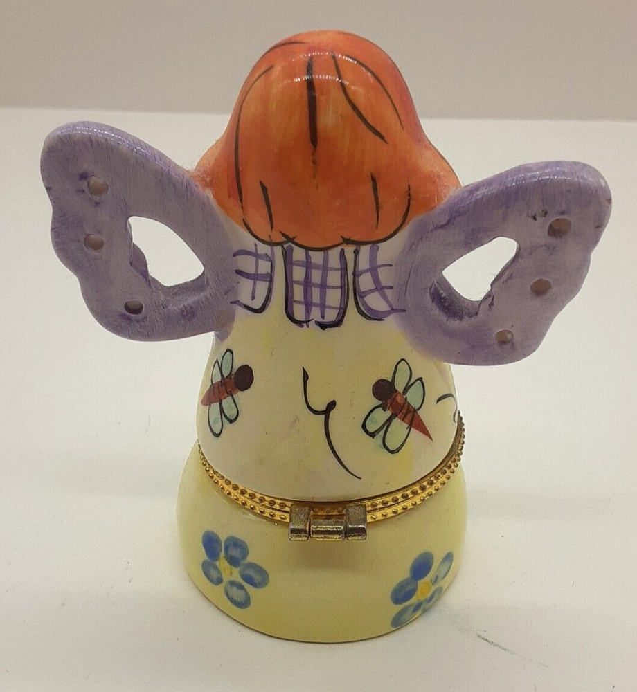Style: Angel Fairy Character Family: Angel Fairy Finish: Glossy Shape: Angel Material: Ceramic & Porcelain Character: angel Additional Parts Required: No Subject: Angel Fairy Number in Pack: 1 Type: Trinket Box Occasion: All Occasions Color: Multi color Seller Notes: “Good Pre-Owned Condition” Time Period Manufactured: Unknown Brand: Unbranded Handmade: No Country/Region of Manufacture: Unknown Features: hinged Theme: Whimsical Angel