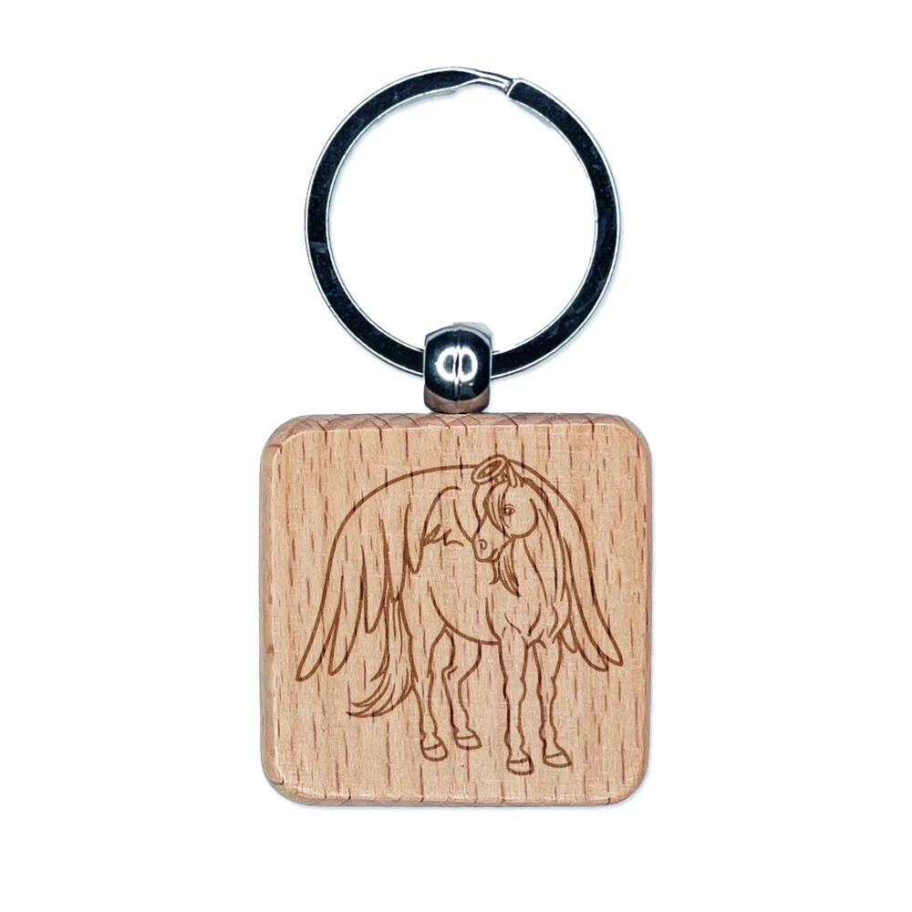 Angel Horse Loss of Pet Engraved Wood Square Keychain Tag Charm