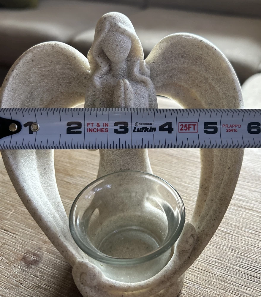 Type: Candle Holder Theme: Religious, Art, Barware, Mystical, Novelty, Romantic Suitable For: Mini Candle, Window, Furniture Shape: Praying Angel With Wings Room: Any Room Occasion: All Occasions Pattern: Angel, Memorial Candle Packaging: Unboxed Color: Ivory, Sand Finish: Stone Item Width: 5.5 in Number in Pack: 1 Subject: Angel Care Instructions: Clean with Damp Cloth Item Length: 4.25 in Antique: No Item Height: 5.5 in Brand: OakiWay Material: Resin