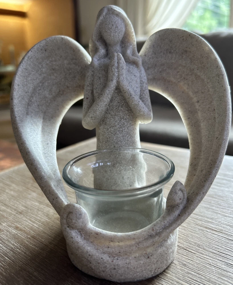Angel Votive Candle Holder Resin OakiWay Desert Stone Praying Religious Tealight