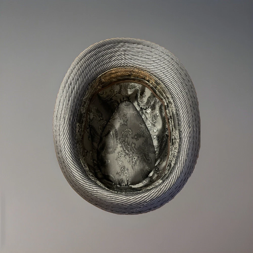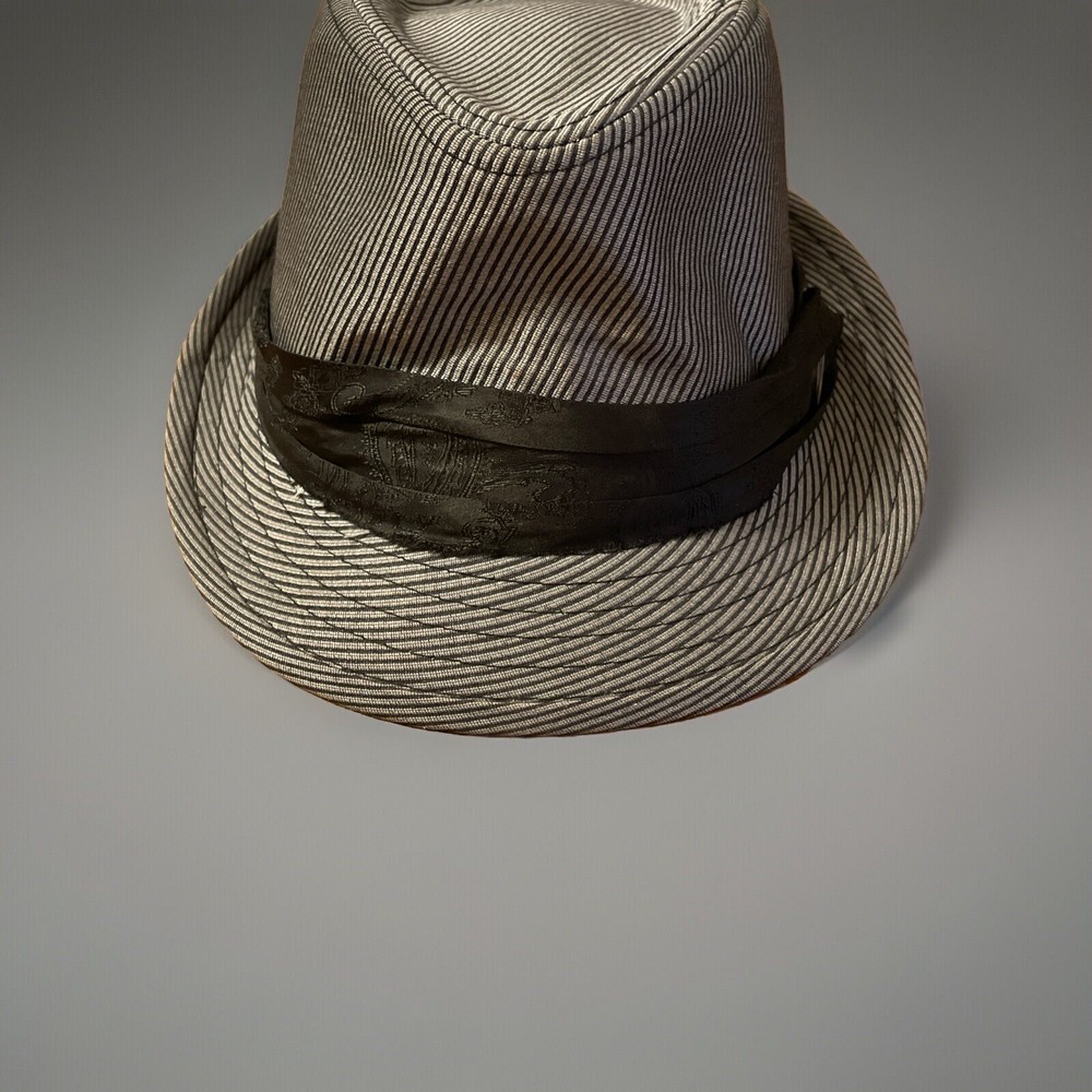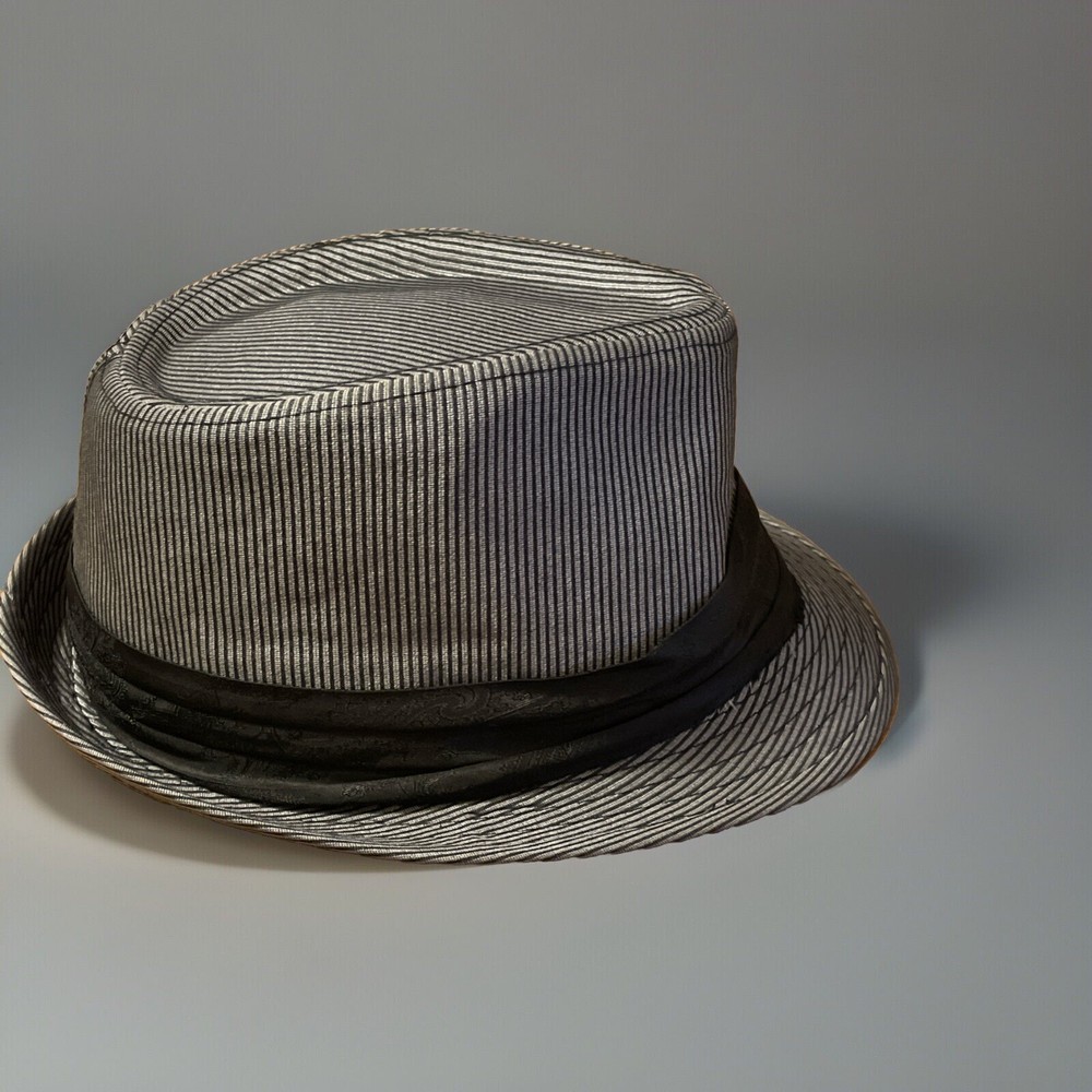 SEE PHOTOS: front of hat needs some reshaping. Elevate your accessory game with the Angela & William Fedora Hat, a timeless piece that exudes classic sophistication. Its grey, striped pattern and twill fabric provide a versatile look that complements both casual and business attire, making it a must-have for any wardrobe. Designed for unisex adults, this hat offers a comfortable fit in size L, ensuring a secure and flattering wear for a variety of head shapes. Crafted from a blend of wool and acrylic, the hat is both lightweight and durable, perfect for seasonal transitions. The lined interior adds an extra layer of comfort, while the hat's sleek design without any character embellishments keeps the focus on its striking pattern and quality construction. Whether attending a party, cocktail event, or simply stepping out in style, this fedora is sure to add a touch of elegance to your outfit.