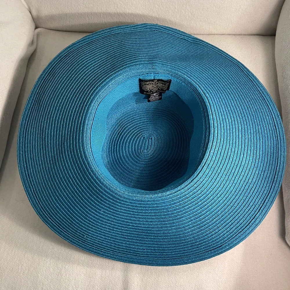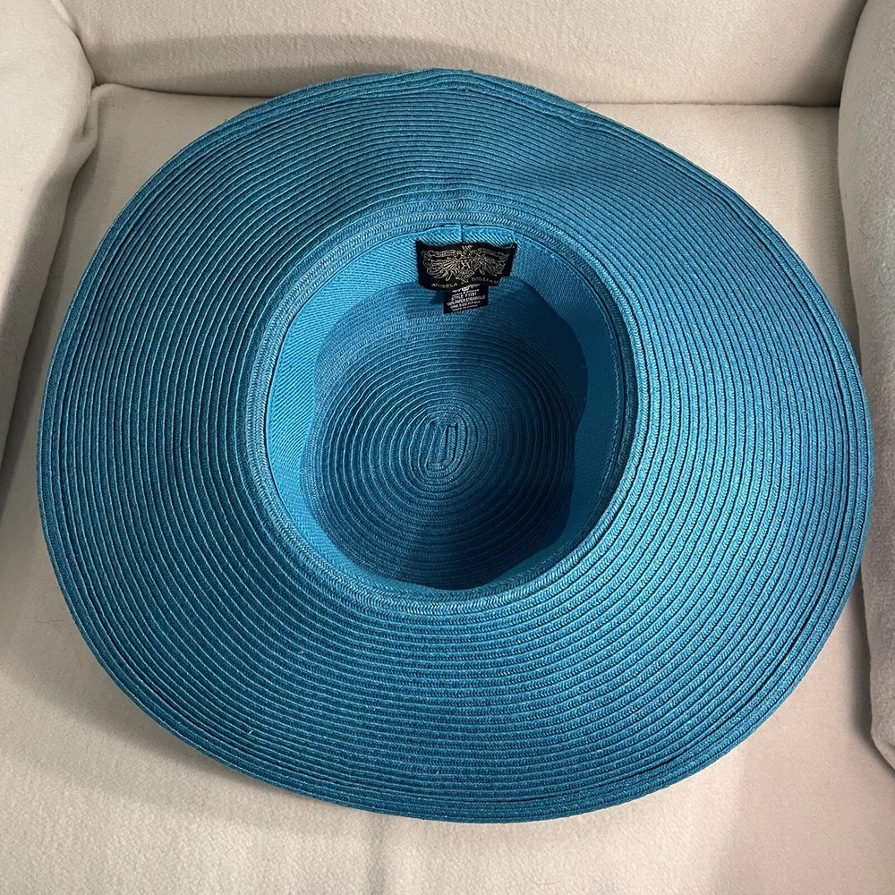 Angela & William Women Paper Straw Floppy Summer Hat Aqua Blue Brim 4.75”