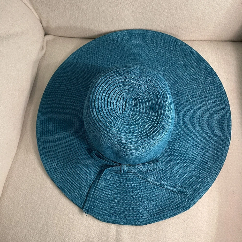 Material: Straw Theme: Beach Size: One Size Accents: Bow Pattern: Solid Season: Summer, Spring Color: Blue Style: Sun Hat Department: Women Brand: Angela & William