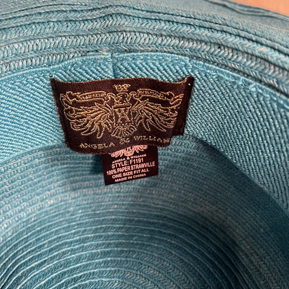 The Angela & William Women Paper Straw Floppy Summer Hat in Aqua Blue is a stylish sun hat designed for the beach during the summer and spring seasons. It features a 4.75" brim for ample sun protection and is made from straw material with a solid blue color. The hat has a feminine touch with a bow accent, making it a fashionable accessory for women's outdoor activities. With its one size fitting, this hat from Angela & William offers both style and functionality for sunny days. Excellent condition. New without tags.