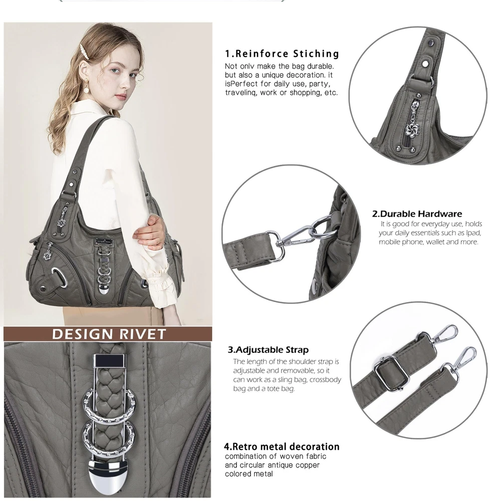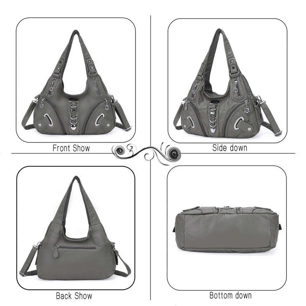 Angelkiss Hobo Purses and handbags for Women Satchel Handbag Women Purses Large Daily Shoulder Bags ♔[Matreial for Purses]—High quality washed PU leather,comfortable, light weight, washable, ironable, Stylish and elegant ,vintage design Hobo Bag with beautiful decorative silver color hardware multi vegan colors or tie-dye colors to choose. ♔[Suitable Size]—14*5*13 inch(body), double shoulder straps comfortable for your shoulder.It’s a convertible hobo bag with a snap hook strap that can change multi backpack ways. ♔[Functional Structure]—The outer multi pockets design is convenient for storing your cosmetics, keys, and other small items. Multi roomy main body design can put IPAD, notebooks and other daily items. ♔[Multi-Benefits]—An ultra practical fashion bag,one bag can suitable for various occasions, large capacity can be placed daily cosmetics, mobile phones, wallets and other daily items,also suitable for your tablet and Ipad,Easy to carry, perfect gift for your friends,sister,mother and lover. ♔[After Service]—Excellent design, exquisite handmade and high practicality are the common features of Angelkiss brand bags. We offer 100% After-sale Guarantee to our products. To select more crossbody bags, tote handbags and wallets, you can search Angelkiss. Shipping We offer FREE shipping on all orders! We ship within Three business days of payment, usually sooner. We use a selection of shipping services such as UPS, FedEx, USPS etc. We only ship to the lower 48 states, no APO/FPO addresses or PO Boxes allowed. Local pickups and combined shipping options are not provided at this time. Return You can return a product for up to 30 days from the date you purchased it. Any product you return must be in the same condition you received it and in the original packaging. Please keep the receipt. Payment We accept payment by any of the following methods: PayPal Please pay as soon as possible after winning an auction, as that will allow us to post your item to you sooner! Feedback Customer satisfaction is very important to us. If you have any problem with your order, please contact us and we will do our best to make you satisfied. Contact Us If you have any queries, please contact us via ebay. We usually respond within 24 hours on weekdays. Please visit our eBay store to check out other items for sale! Thank you for shopping at our store.