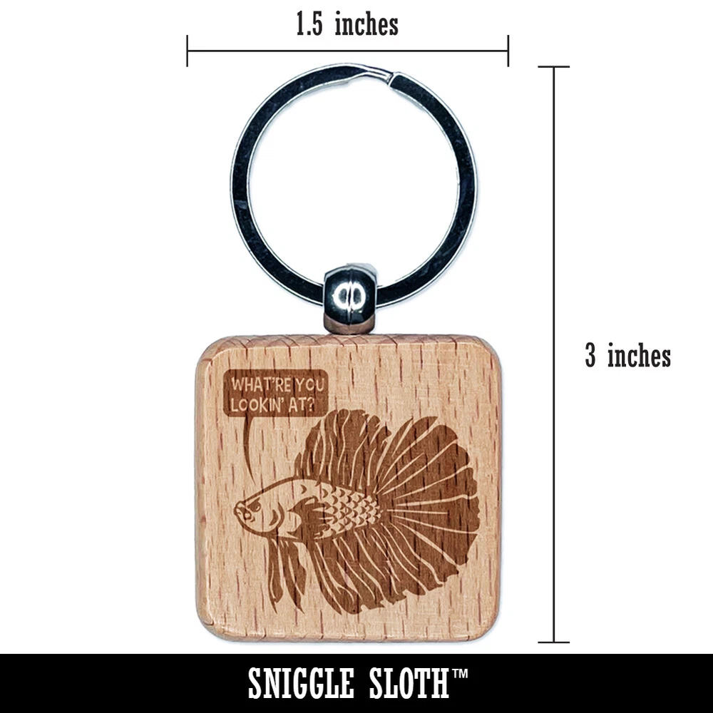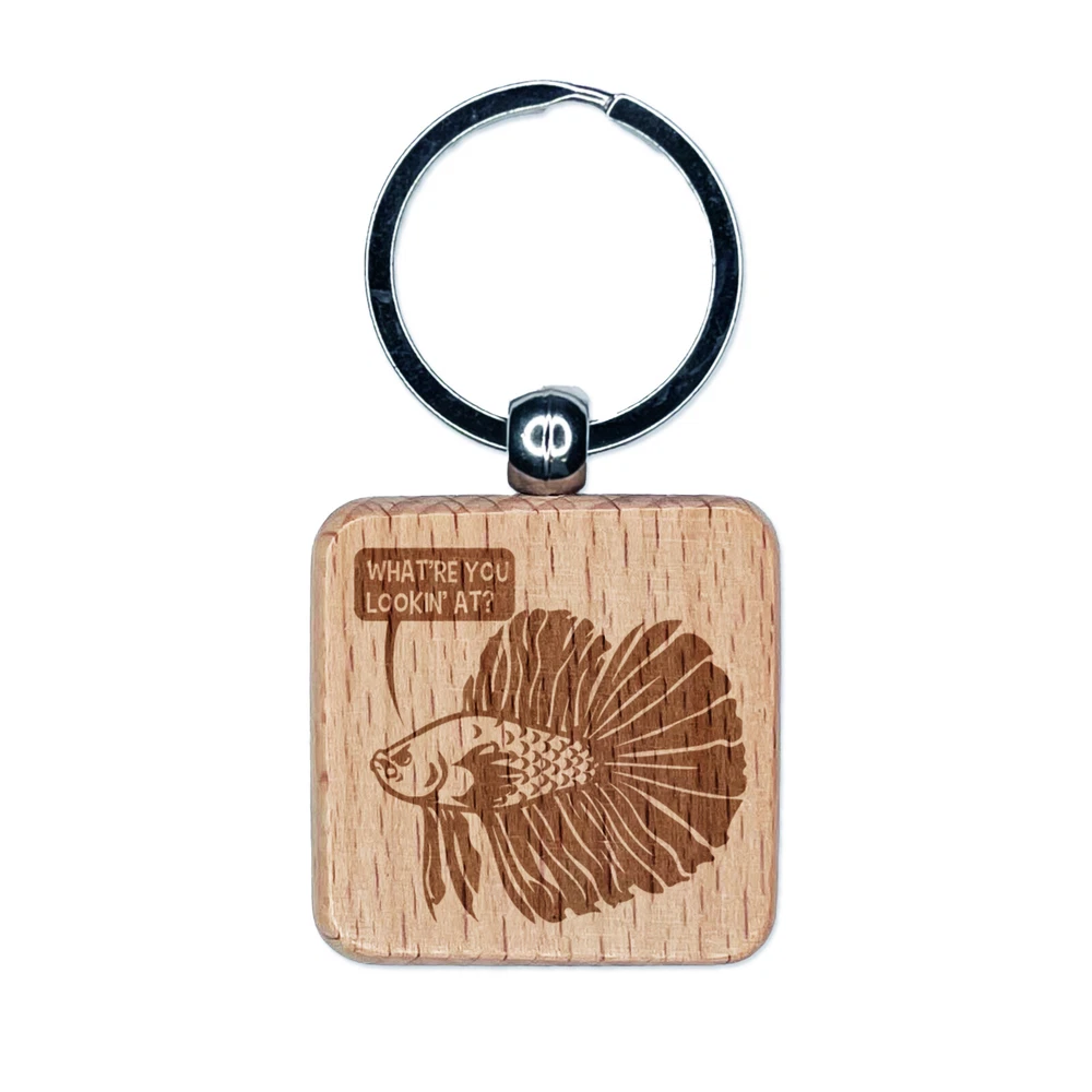 Angry Betta Fish Looking to Start Fight Engraved Wood Square Keychain Tag Charm